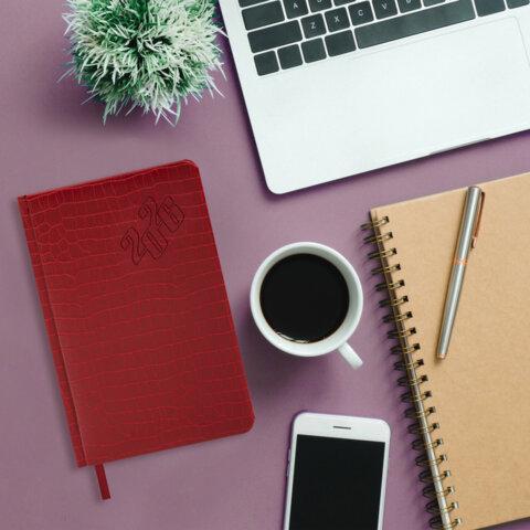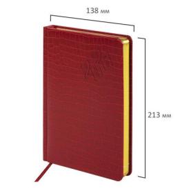 Датированный ежедневник BRAUBERG "Comodo" с обложкой, стилизованной под кожу крокодила, выглядит очень изысканным.Внутренний блок включает 168 листов тонированной бумаги плотностью 70 г/м2. Каждая страничка имеет перфорированный угол. Благодаря стандартному формату А5 (138х213 мм) ежедневник удобно использовать как в офисе, так и на выездных деловых встречах. Материал обложки насыщенного красного цвета подходит для горячего тиснения. Срез ежедневника фольгирован золотой фольгой, что придает ему особый шарм.