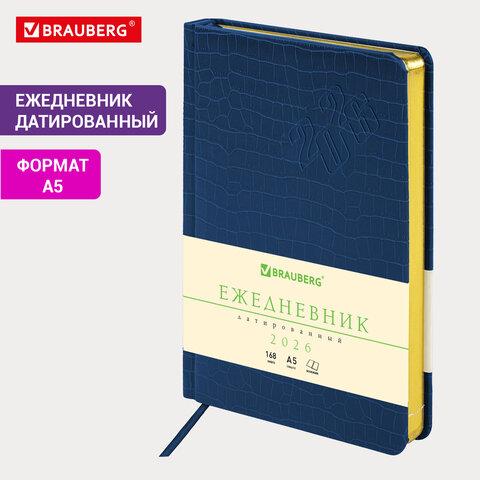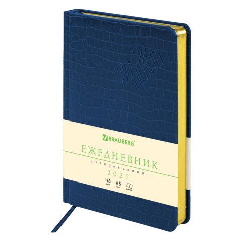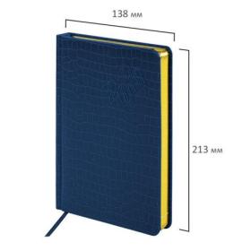 Датированный ежедневник BRAUBERG "Comodo" с обложкой, стилизованной под кожу крокодила, выглядит очень изысканным.Внутренний блок включает 168 листов тонированной бумаги плотностью 70 г/м2. Каждая страничка имеет перфорированный угол. Благодаря стандартному формату А5 (138х213 мм) ежедневник удобно использовать как в офисе, так и на выездных деловых встречах. Материал обложки насыщенного синего цвета подходит для горячего тиснения. Срез ежедневника фольгирован золотой фольгой, что придает ему особый шарм.