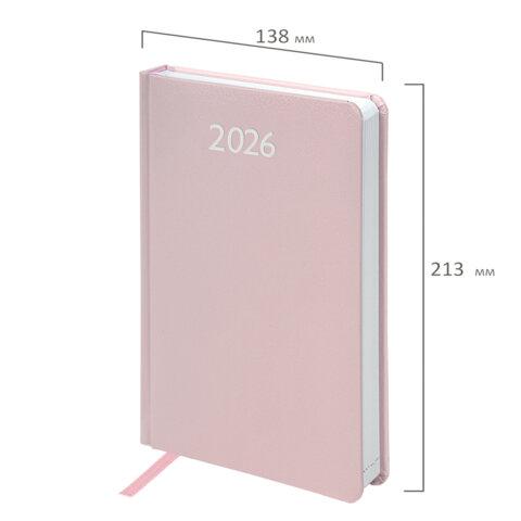 Обложка датированного ежедневника BRAUBERG "Profile" выполнена из приятного на ощупь рельефного материала, имитирующего фактурную кожу, и выдержана в нежном светло-розовом цвете. Модель подойдёт тем, кто предпочитает сдержанный стиль и деловой формат.Внутренний блок включает 168 листов белой бумаги плотностью 70 г/м2. Каждая страничка имеет перфорированный угол. Благодаря стандартному формату А5 (138х213 мм) ежедневник удобно использовать как в офисе, так и на выездных деловых встречах. Жесткая книжная обложка с легкой рельефной фактурой напоминает натуральную кожу. Материал обложки – балакрон, подходит для тиснения только фольгой.