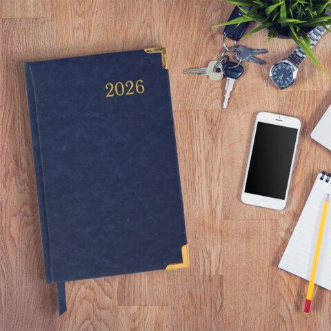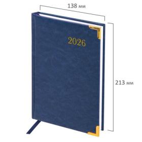 Твердая обложка благородного синего цвета стилизована под гладкую кожу. Подходит для горячего тиснения. Ежедневник имеет металлические уголки, что придает ему особый шарм. Дополнением является закладка-ляссе, с помощью которой при необходимости можно быстро открыть ежедневник на нужной странице. Помимо прочего, ежедневник снабжен обширным справочным материалом. В конце имеются 4 страницы для записей и заметок.