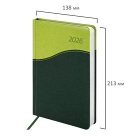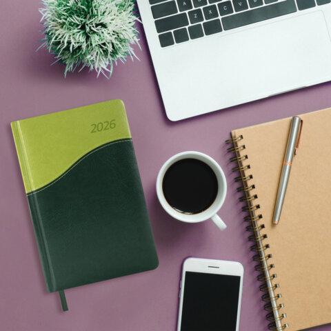 Датированный ежедневник BRAUBERG "Bond" – надежный спутник делового человека, который привык тщательно планировать свое время. Стильный дизайн никого не оставит равнодушным к этой модели.Внутренний блок включает 168 листов белой бумаги плотностью 70 г/м2. Каждая страничка имеет перфорированный угол. Благодаря стандартному формату А5 ежедневник удобно использовать как в офисе, так и на выездных деловых встречах. Выполнен в стильном сочетании темно-зеленого и салатового цветов. Материал обложки подходит для горячего тиснения. Дополнением является закладка-ляссе, с помощью которой при необходимости можно быстро открыть ежедневник на нужной странице.