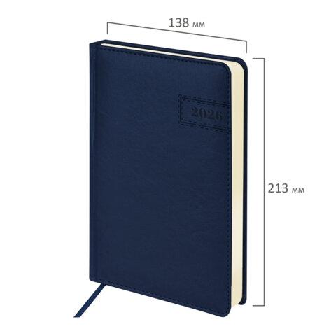 Датированный ежедневник BRAUBERG "Imperial" выполнен в классическом дизайне. Непревзойденное качество исполнения воплощает поистине имперскую роскошь этого делового аксессуара.Внутренний блок включает 168 листов тонированной бумаги плотностью 70 г/м2. Каждая страничка имеет перфорированный угол. Благодаря стандартному формату А5 (138х213 мм) датированный ежедневник удобно использовать как в офисе, так и на выездных деловых встречах. Твердая обложка стилизована под гладкую кожу благородного синего цвета. Материал обложки подходит для горячего тиснения. Дополнением является закладка-ляссе, с помощью которой при необходимости можно быстро открыть ежедневник на нужной странице.