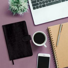 Жесткая книжная обложка прошита по периметру, имеет легкую рельефную фактуру и напоминает натуральную кожу. Материал обложки подходит для горячего тиснения. Обложка фиксируется магнитной застежкой, поэтому ежедневник не откроется в сумке или портфеле и страницы не помнутся.