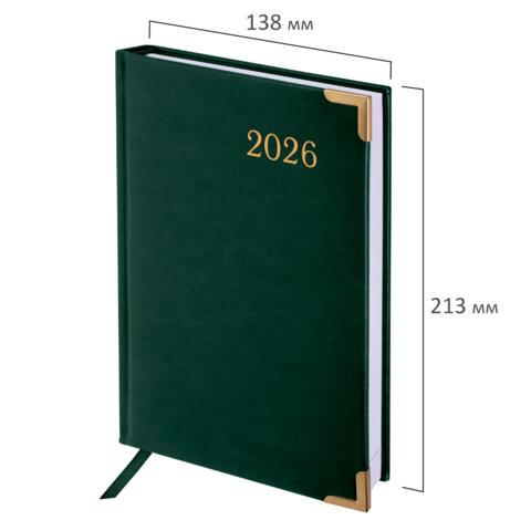 Твердая обложка благородного зеленого цвета стилизована под гладкую кожу. Подходит для горячего тиснения. Ежедневник имеет металлические уголки, что придает ему особый шарм. Дополнением является закладка-ляссе, с помощью которой при необходимости можно быстро открыть ежедневник на нужной странице. Помимо прочего, ежедневник снабжен обширным справочным материалом. В конце имеются 4 страницы для записей и заметок.