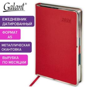 Датированный ежедневник серии "Infinity" от GALANT – надежный спутник делового человека.Внутренний блок включает 168 листов тонированной бумаги цвета "слоновая кость" плотностью 70 г/м2. Каждая страничка имеет перфорированный угол. Благодаря стандартному формату А5 (148х218 мм) ежедневник удобно использовать как в офисе, так и на выездных деловых встречах.Твердая обложка выполнена под кожу с отделкой из металлических накладок, что увеличивает ее износоустойчивость. Срез ежедневника покрыт серебряной фольгой в цвет металлических накладок, и это придает ему особый шарм. Материал обложки подходит для горячего тиснения.