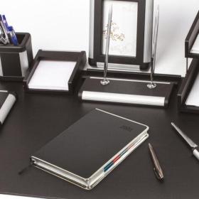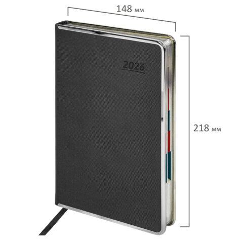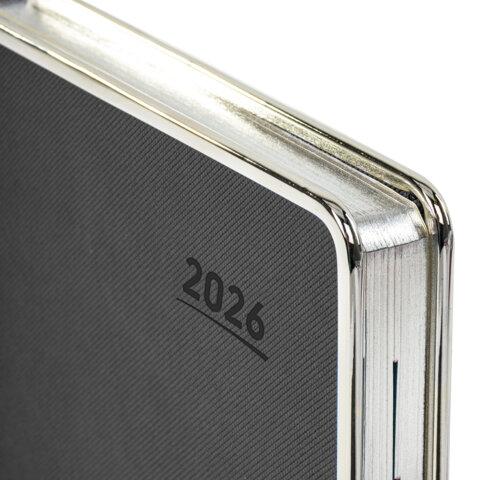 Датированный ежедневник серии "Infinity" от GALANT – надежный спутник делового человека.Внутренний блок включает 168 листов тонированной бумаги цвета "слоновая кость" плотностью 70 г/м2. Каждая страничка имеет перфорированный угол. Благодаря стандартному формату А5 (148х218 мм) ежедневник удобно использовать как в офисе, так и на выездных деловых встречах. Твердая обложка выполнена под кожу с отделкой из металлических накладок, что увеличивает ее износоустойчивость. Срез ежедневника покрыт серебряной фольгой в цвет металлических накладок, и это придает ему особый шарм. Материал обложки подходит для горячего тиснения.