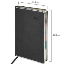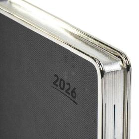 Дополнением является закладка-ляссе, с помощью которой при необходимости можно быстро открыть ежедневник на нужной странице, а также вырубка по месяцам. Помимо прочего, ежедневник снабжен обширным справочным материалом. В конце ежедневника есть 6 страниц для записей и заметок. Выполнен в сером цвете.