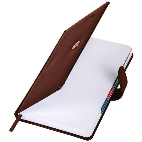 Датированный ежедневник серии "Ritter" от GALANT – надежный спутник делового человека.Внутренний блок включает 168 листов белой бумаги плотностью 70 г/м2. Каждая страничка имеет перфорированный угол. Благодаря стандартному формату А5 (148х218 мм) ежедневник удобно использовать как в офисе, так и на выездных деловых встречах. Твердая обложка, прошитая по периметру, стилизованная под гладкую кожу, фиксируется магнитной застежкой, поэтому ежедневник не откроется в сумке или портфеле и страницы не помнутся. Материал обложки подходит для горячего тиснения.