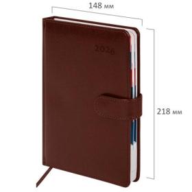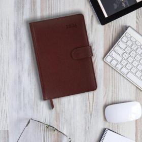 Дополнением является закладка-ляссе, с помощью которой при необходимости можно быстро открыть ежедневник на нужной странице, а также вырубка по месяцам. Помимо прочего, ежедневник снабжен обширным справочным материалом. В конце ежедневника есть 6 страниц для записей и заметок. Выполнен в благородном коричневом цвете.