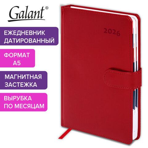 Датированный ежедневник серии "Ritter" от GALANT – надежный спутник делового человека.Внутренний блок включает 168 листов белой бумаги плотностью 70 г/м2. Каждая страничка имеет перфорированный угол. Благодаря стандартному формату А5 (148х218 мм) ежедневник удобно использовать как в офисе, так и на выездных деловых встречах. Твердая обложка, прошитая по периметру, стилизованная под гладкую кожу, фиксируется магнитной застежкой, поэтому ежедневник не откроется в сумке или портфеле и страницы не помнутся. Материал обложки подходит для горячего тиснения.