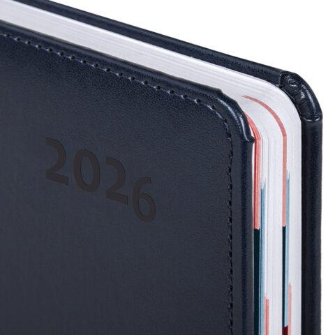 Дополнением является закладка-ляссе, с помощью которой при необходимости можно быстро открыть ежедневник на нужной странице, а также вырубка по месяцам. Помимо прочего, ежедневник снабжен обширным справочным материалом. В конце ежедневника есть 6 страниц для записей и заметок. Выполнен в классическом темно-синем цвете.
