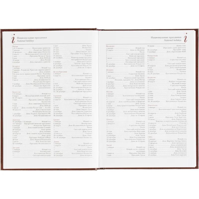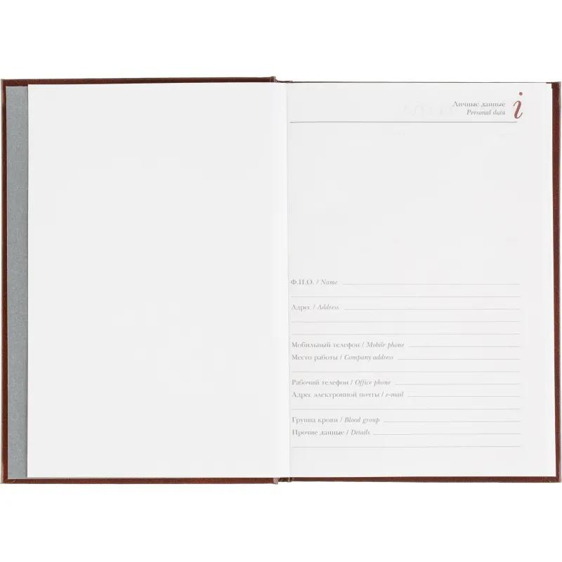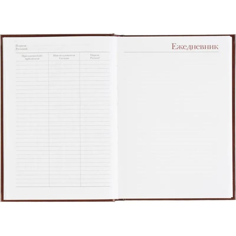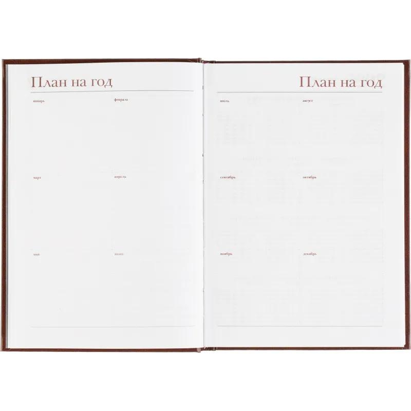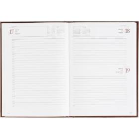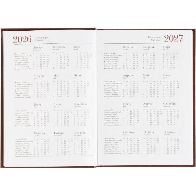 Ежедневник датированный Attache Ideal New предназначен для ведения записей и планирования на каждый день. Модель выполнена в формате A5 и имеет размер 14.6×20.6 см, что делает её удобной для использования в офисе и на выезде. Обложка из балакрона коричневого цвета оформлена в однотонном классическом дизайне и отличается высокой износостойкостью. Твёрдая основа и вертикальная ориентация обеспечивают комфорт при записи.<br><br>Внутренний блок включает 168 листов белой офсетной бумаги плотностью 60 г/кв.м с линейной разметкой и двухцветной печатью. Страницы скреплены сшивкой, что повышает надёжность конструкции. В ежедневнике предусмотрена датированная разметка на 2026 год и календарный блок на 2 года. Углы листов прямые, без скругления, перфорации и вырубки.