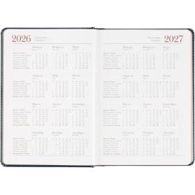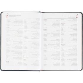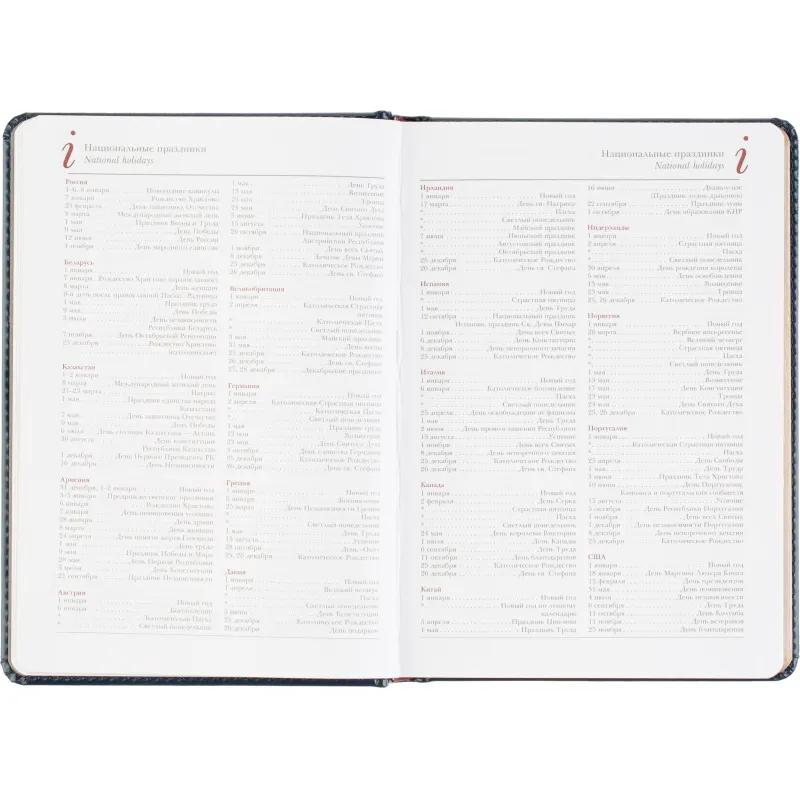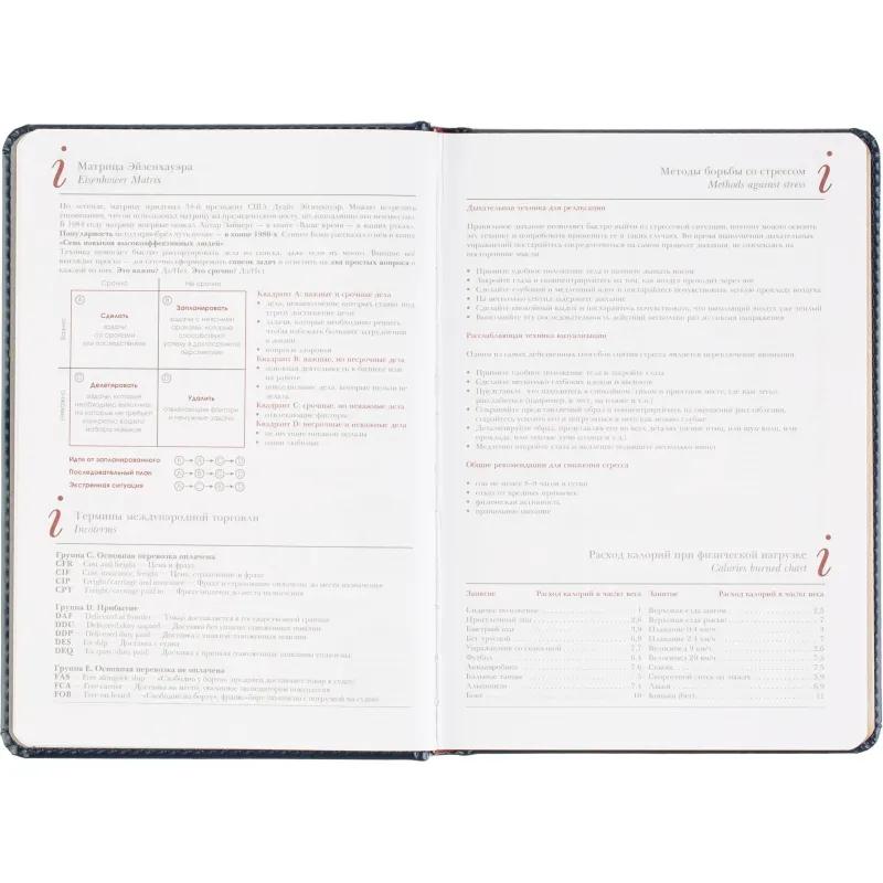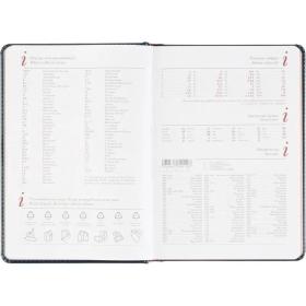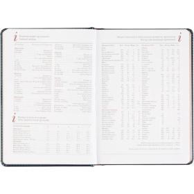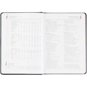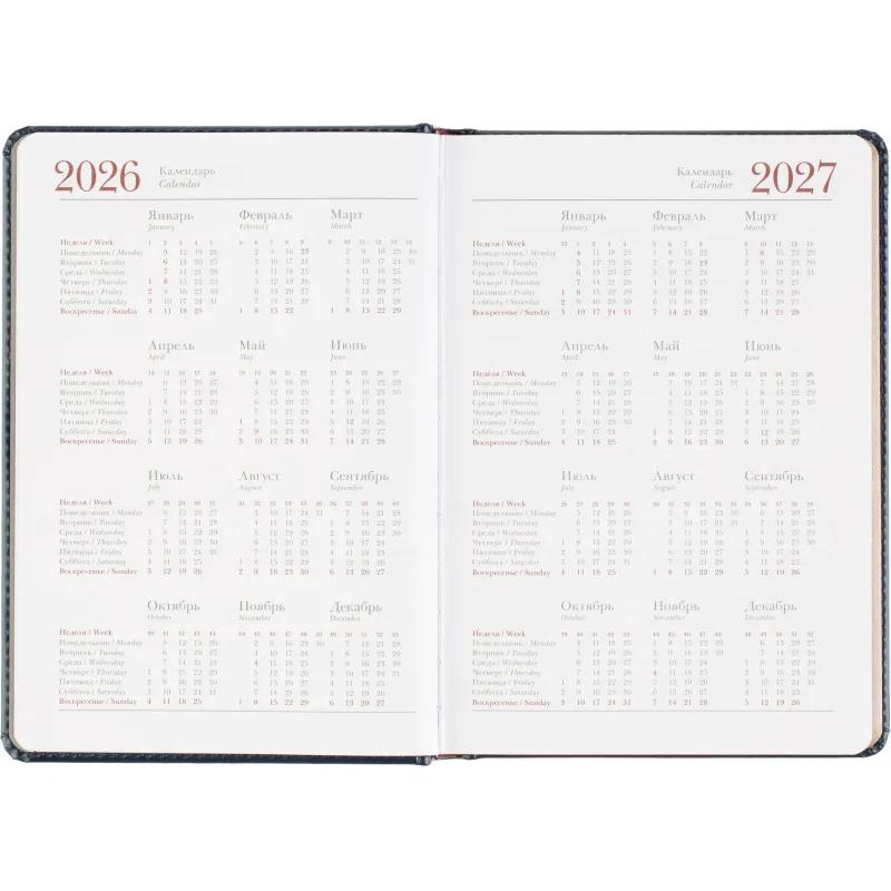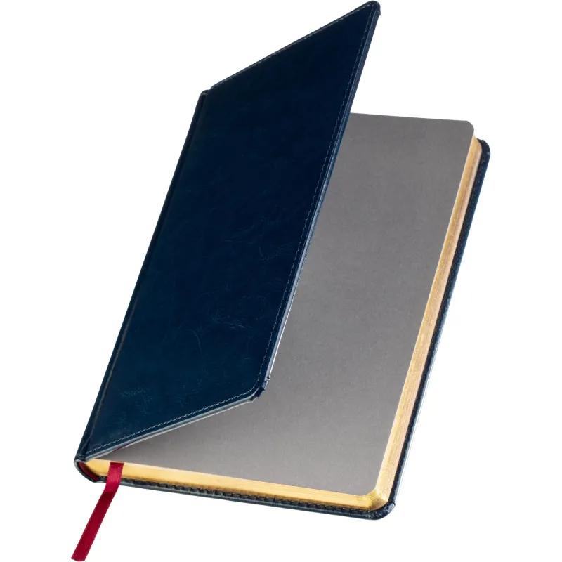 Ежедневник датированный 2026 год Attache Sidney Nebraska разработан для удобного ведения записей и структурирования рабочего графика. Модель выполнена в формате A5 и имеет размер 14.5×20.5 см, что делает её практичной для использования в офисе и при командировках. Твёрдая обложка из искусственной кожи синего цвета оформлена в однотонном деловом стиле и дополнена прострочкой по периметру, обеспечивающей аккуратность и прочность.<br><br>Блок зафиксирован с помощью сшивки, что обеспечивает устойчивость к ежедневному использованию. Внутри размещено 168 листов белой офсетной бумаги плотностью 70 г/кв.м, разлинованных в линейку и напечатанных в две краски. Ежедневник включает датированную разметку на 2026 год и календарный блок на 2 года, а также содержит справочный раздел. Золотистый обрез придаёт изделию выразительность и завершённость. Скруглённые углы листов защищают бумагу от повреждений. Встроенное ляссе позволяет быстро находить нужную дату.
