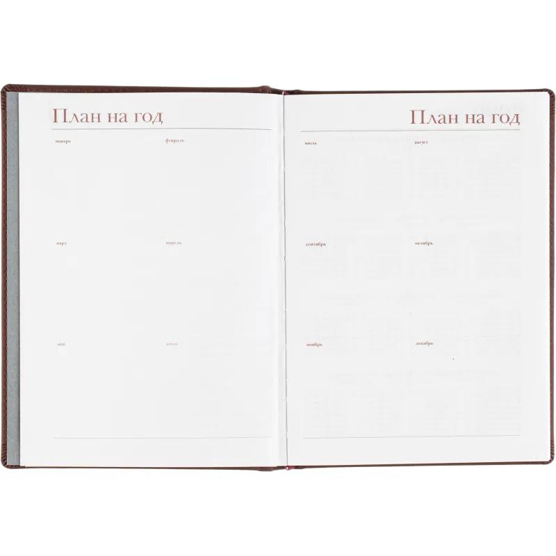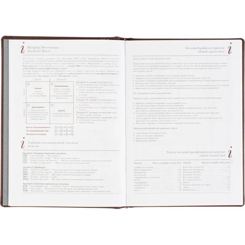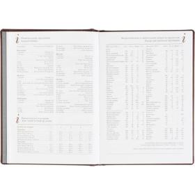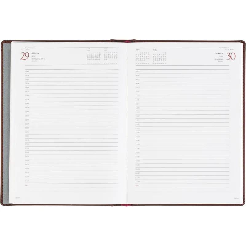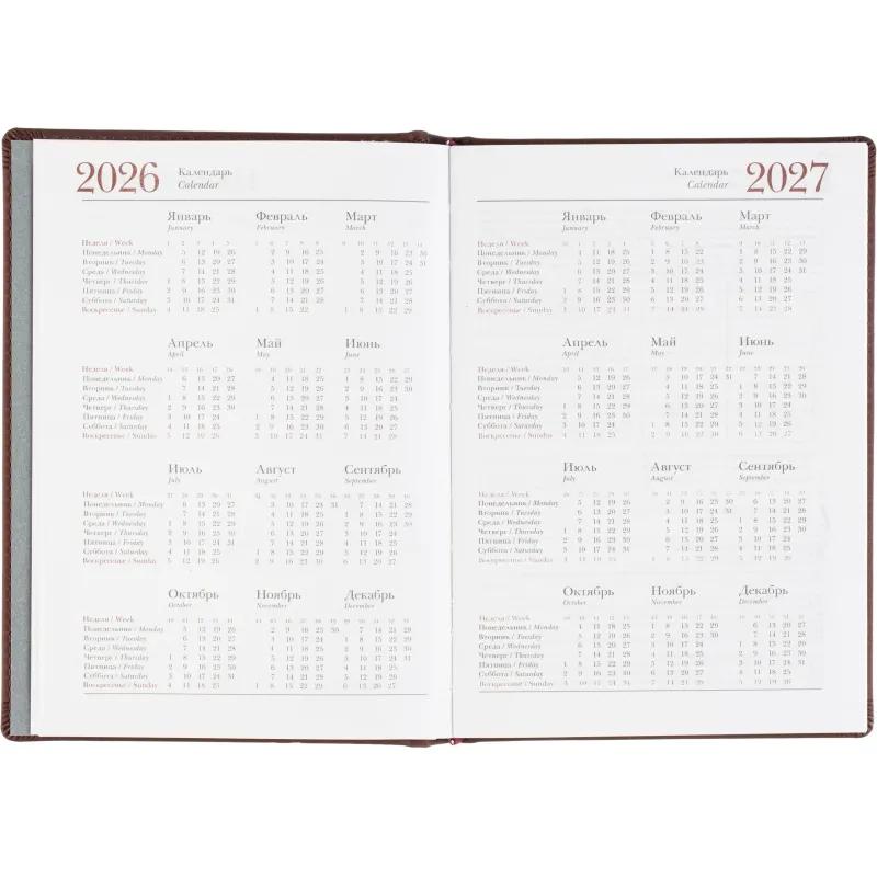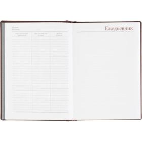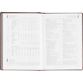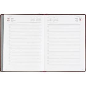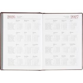 Ежедневник датированный Attache Velvet предназначен для ежедневного планирования и записи информации. Модель выполнена в формате A5 с размером 14.6×20.6 см, что делает её удобной для использования в офисе или в дороге. Обложка из искусственной кожи бордового цвета оформлена в однотонном деловом стиле, отличается твёрдой основой и дополнена прострочкой по периметру, обеспечивающей аккуратный внешний вид и дополнительную прочность. Вертикальная ориентация позволяет удобно просматривать записи.<br><br>Внутренний блок включает 168 листов белой офсетной бумаги плотностью 70 г/кв.м. Страницы имеют линейную разметку и напечатаны в две краски. Переплёт выполнен на сшивке, что повышает долговечность изделия. Ежедневник содержит датированную разметку на 2026 год и календарный блок на 2 года. Углы страниц прямые, вырубка и перфорация отсутствуют.