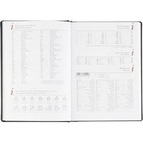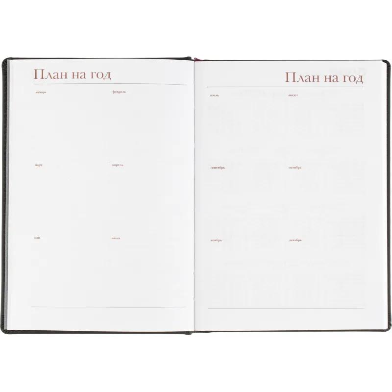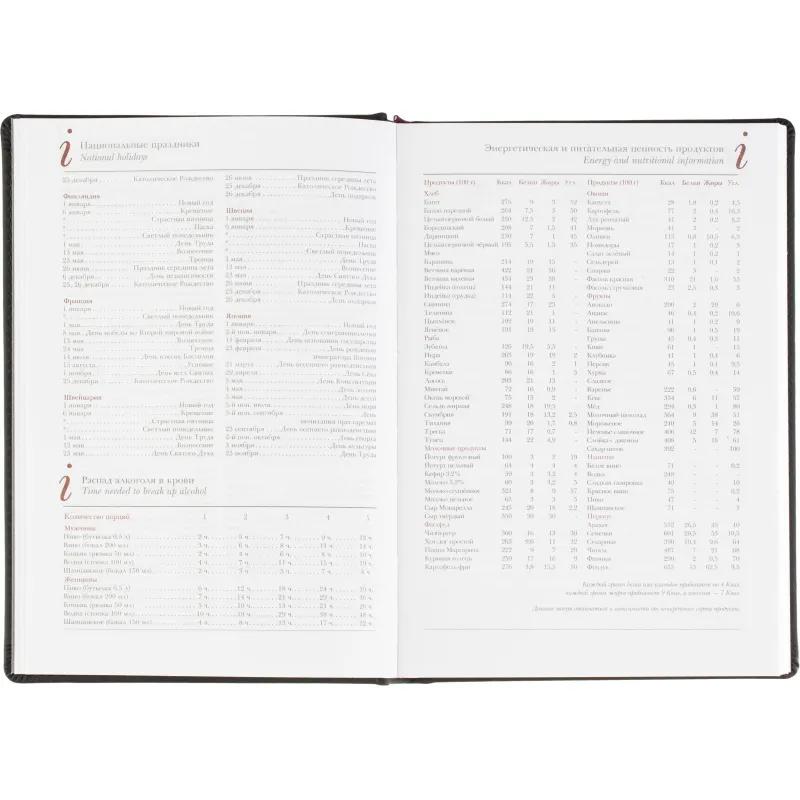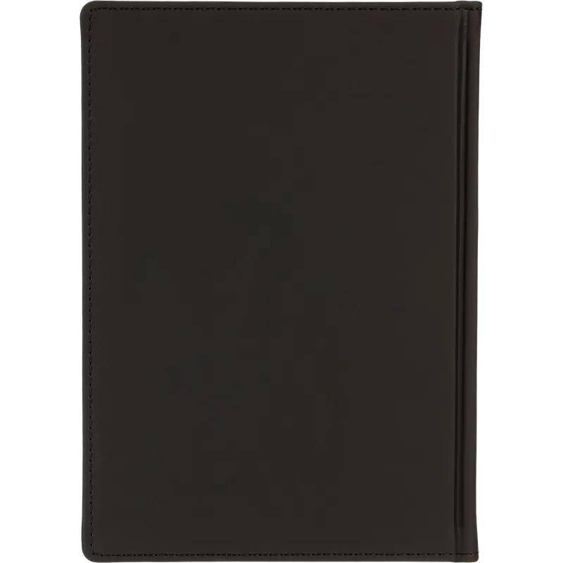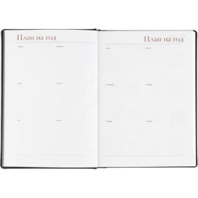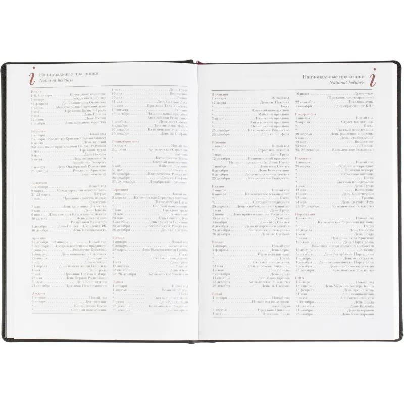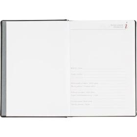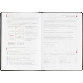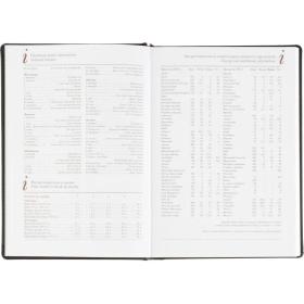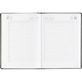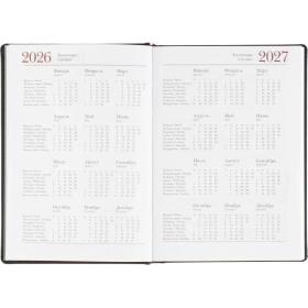 Ежедневник датированный Attache Velvet предназначен для ежедневного планирования задач и ведения записей в деловом формате. Модель выполнена в формате A5 и имеет размер 14.6×20.6 см, удобный для повседневного использования. Обложка из искусственной кожи чёрного цвета оформлена в однотонном стиле, дополнена твёрдой основой и прострочкой по периметру, что делает изделие прочным и аккуратным. Вертикальная ориентация облегчает навигацию по записям.<br><br>Блок содержит 168 листов белой офсетной бумаги плотностью 70 г/кв.м, разлинованных в линейку и напечатанных в две краски. Страницы надёжно скреплены с помощью сшивки, обеспечивающей долговечность ежедневника. Внутри предусмотрена датированная разметка на 2026 год, а также календарный блок на 2 года. Скругление, вырубка и перфорация углов отсутствуют.