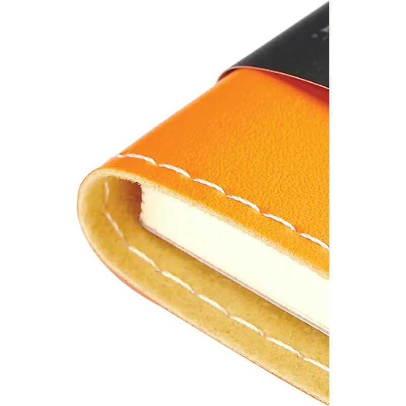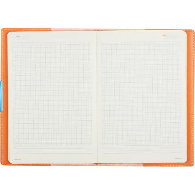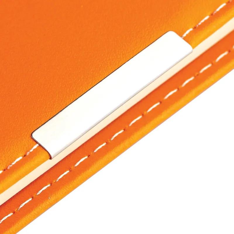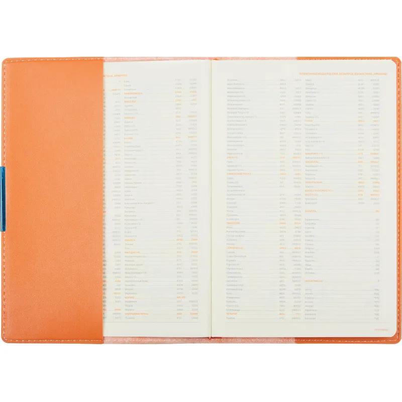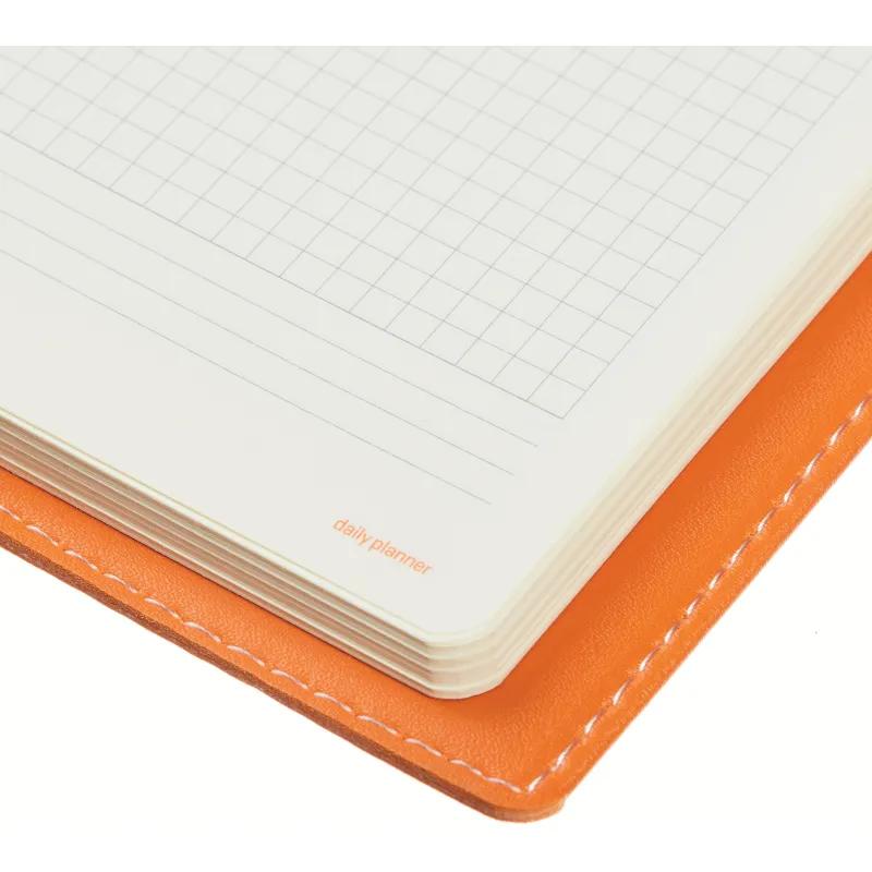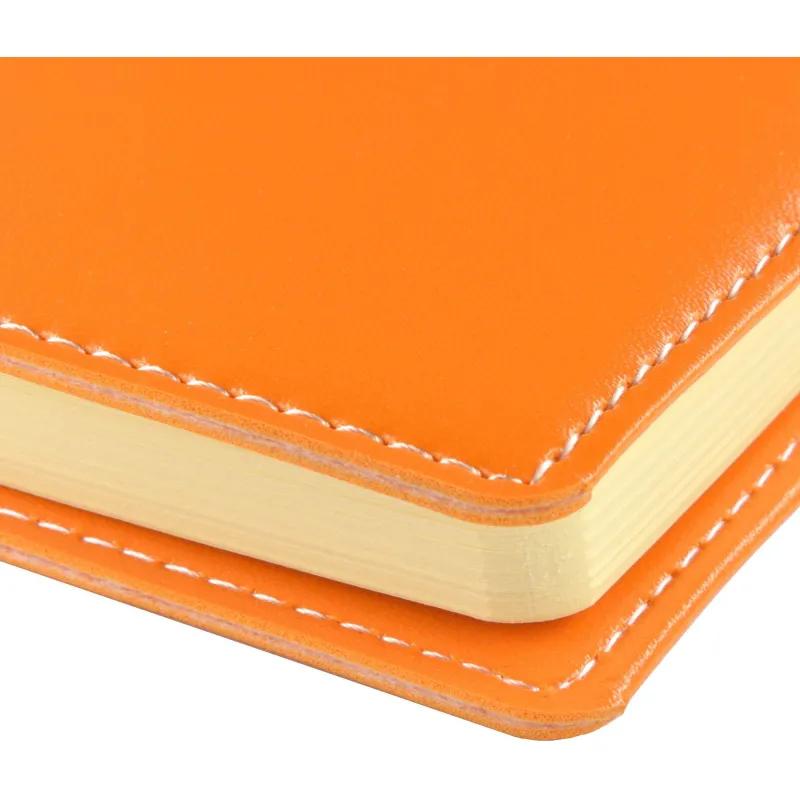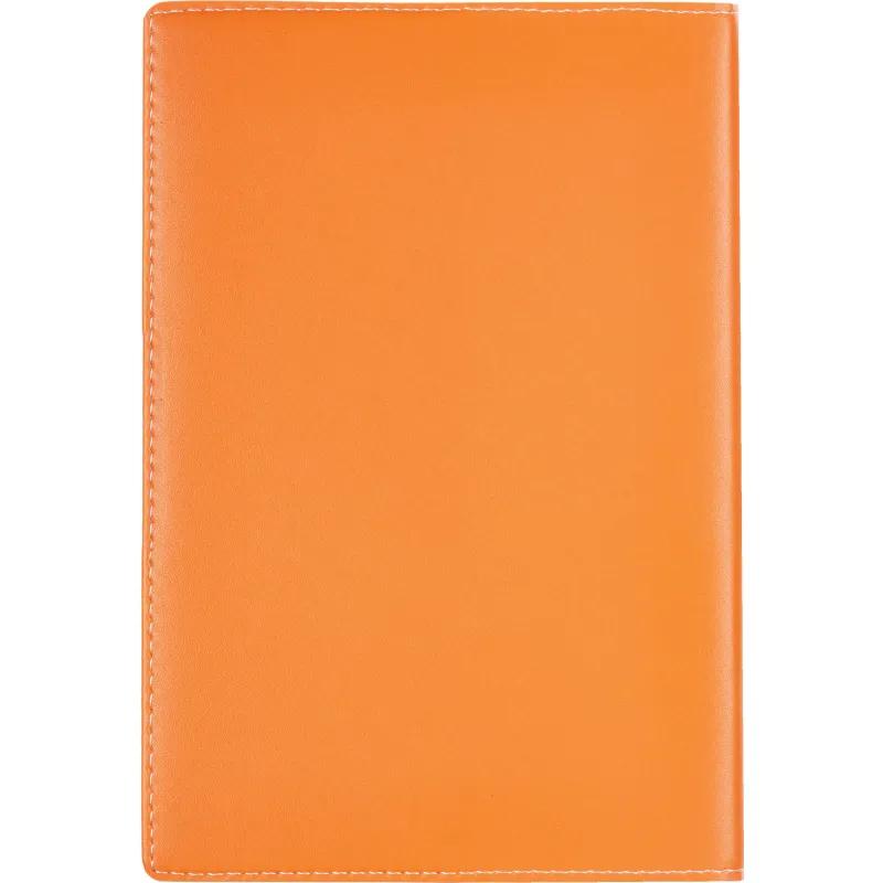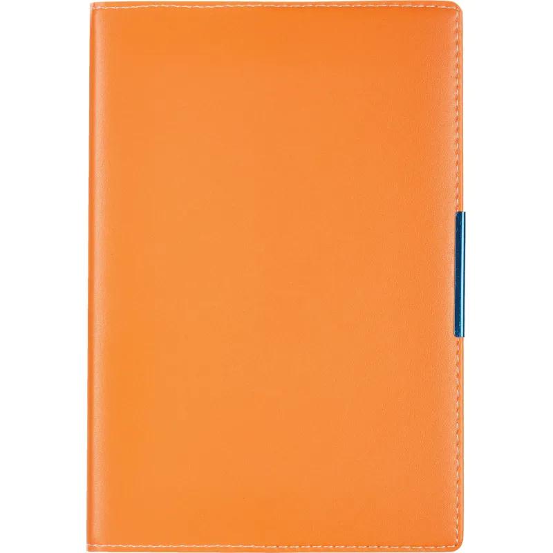 Ежедневник недатированный Bruno Visconti Metropol — искусственная кожа А5 136 листов оранжевый. Ежедневник с гибкой обложкой оранжевого цвета из коллекции Metropol — стильный и функциональный аксессуар для деловых людей. Обложка выполнена из высококачественного переплётного материала, подчёркнута контрастной строчкой белыми нитками по периметру, а ляссе в цвет обложки добавляет удобство при использовании. Стильный металлический шильдик и модный форм-фактор делают его отличным выбором для современного профессионала.<br><br>Внутренний блок состоит из 136 листов (272 страницы) бежевой бумаги плотностью 90 г/кв.м., с клеточной линейкой. Листы недатированные, что позволяет начать использовать ежедневник в любой день года, а на первых 18 страницах размещена полезная справочная информация, включая часовые пояса, аэропорты Европы, телефонные коды, размеры одежды и формат бумаги.<br><br>Ежедневник поставляется в подарочной упаковке, что делает его идеальным для делового подарка. Возможность нанесения персонализированного тиснения (гравировка, блинт, фольга, шёлкография, УФ-печать) позволяет адаптировать его под корпоративные нужды или подарки.<br><br>Этот ежедневник сочетает стиль, функциональность и высокое качество, идеально подходя для современного городского профессионала.