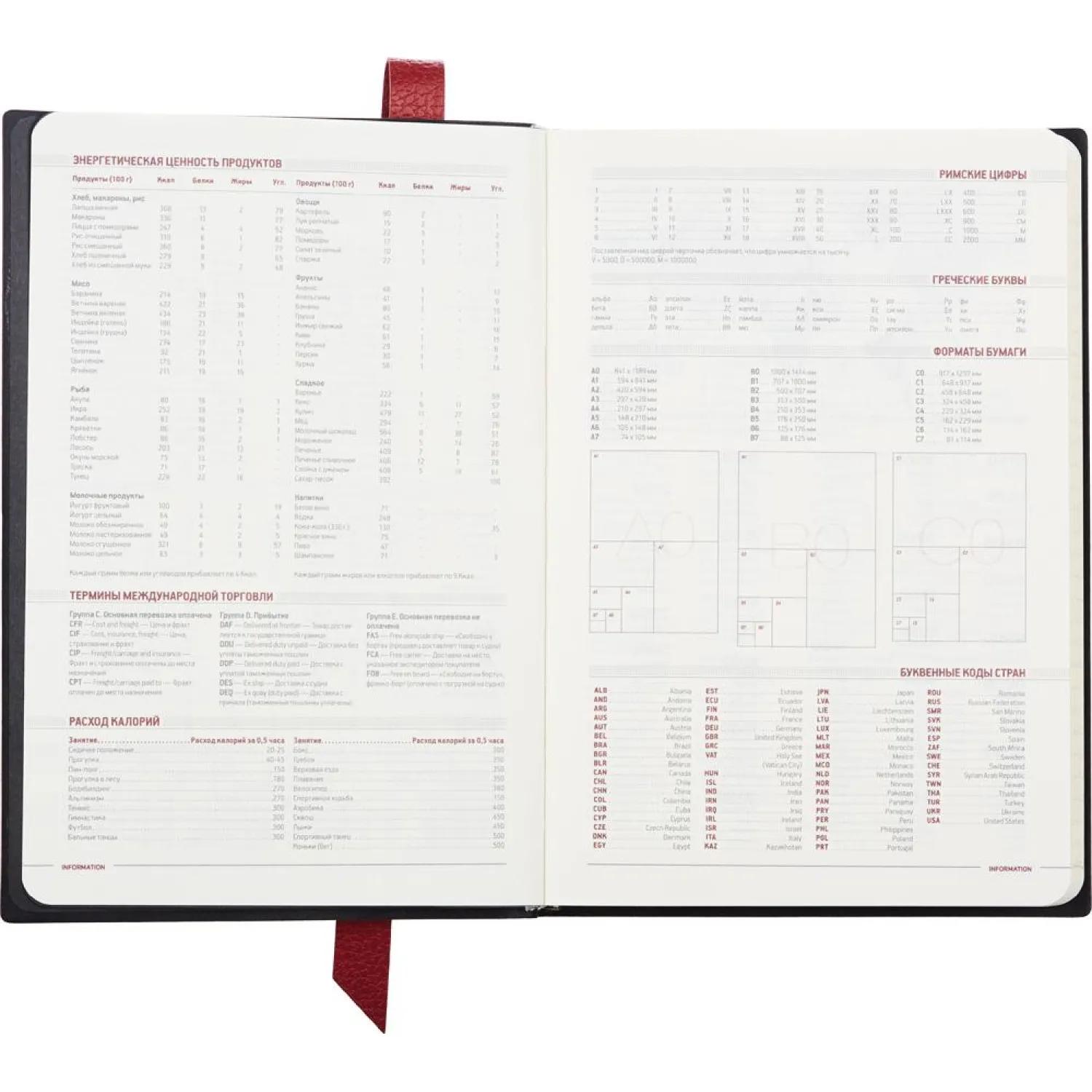 Ежедневник недатированный Bruno Visconti Trend — элегантный и практичный аксессуар для деловых людей. Обложка выполнена из качественного материала, имитирующего зернистую кожу, что придаёт изделию прочность и стильный вид. Матовая поверхность обложки идеально подходит для тиснения, а кожаная закладка-ляссе, выполненная в тон обложке и фиксируемая контрастным белым швом, добавляет изысканности и удобства.<br><br>Внутренний блок состоит из 136 листов (272 страницы) первосортной офсетной бумаги, тонированной в бежевый цвет, плотностью 90 г/кв.м. Листы разлинованы в линейку. Листы недатированные, что позволяет начинать использовать ежедневник в любой момент.<br><br>Ежедневник включает обширный справочный раздел и алфавитную телефонную книгу, что делает его удобным инструментом для хранения информации и планирования.<br><br>Этот ежедневник поставляется в подарочной упаковке, что делает его отличным выбором для подарков.