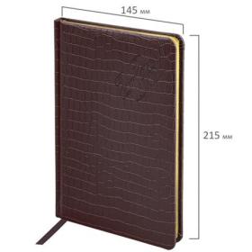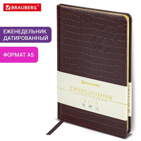 Датированный еженедельник BRAUBERG "Comodo" – великолепная возможность прикоснуться к легендарной рептилии. Обложка, стилизованная под кожу крокодила, и насыщенный цвет делают этот деловой аксессуар изысканным.Внутренний блок включает 64 листа тонированной бумаги плотностью 70 г/м2. Благодаря стандартному формату А5 (145х215 мм) еженедельник удобно использовать как в офисе, так и на выездных деловых встречах. Твердая обложка благородного темно-коричневого цвета, стилизованная под кожу крокодила, подходит для горячего тиснения. Срез еженедельника фольгирован золотой фольгой, что придает ему особый шарм. Дополнением является закладка-ляссе, с помощью которой при необходимости можно быстро открыть еженедельник на нужной странице. Для заметок в еженедельнике имеется 7 страниц в конце внутреннего блока. Помимо прочего, еженедельник снабжен обширным справочным материалом.