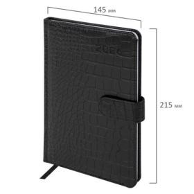 Еженедельник BRAUBERG "Party" – это аксессуар для неординарных людей. Сочные цвета и выраженная текстура выгодно дополнены магнитной застежкой. Дизайн, выполненный под крокодиловую кожу, станет эффектным дополнением к офисному образу.Внутренний блок включает 64 листа белой бумаги плотностью 70 г/м2. Благодаря стандартному формату А5 еженедельник удобно использовать как в офисе, так и на выездных деловых встречах. Твердая обложка, стилизованная под кожу крокодила, фиксируется магнитной застежкой, поэтому еженедельник не откроется в сумке или портфеле и страницы не помнутся. Подходит для горячего тиснения. Дополнением является закладка-ляссе, с помощью которой при необходимости можно быстро открыть еженедельник на нужной странице. Для заметок в еженедельнике имеется 7 страниц в конце внутреннего блока. Еженедельник снабжен обширным справочным материалом. Выполнен в классическом черном цвете.