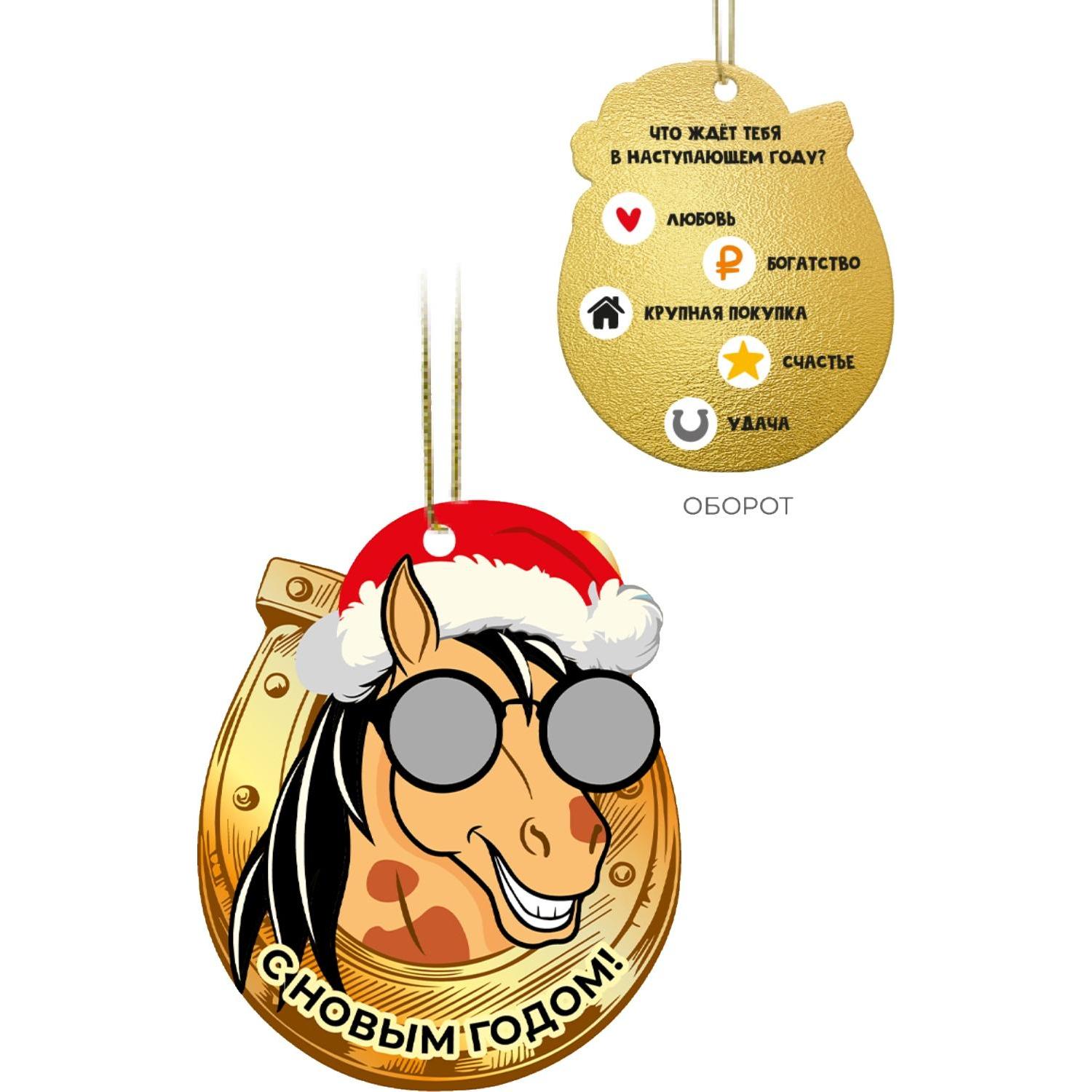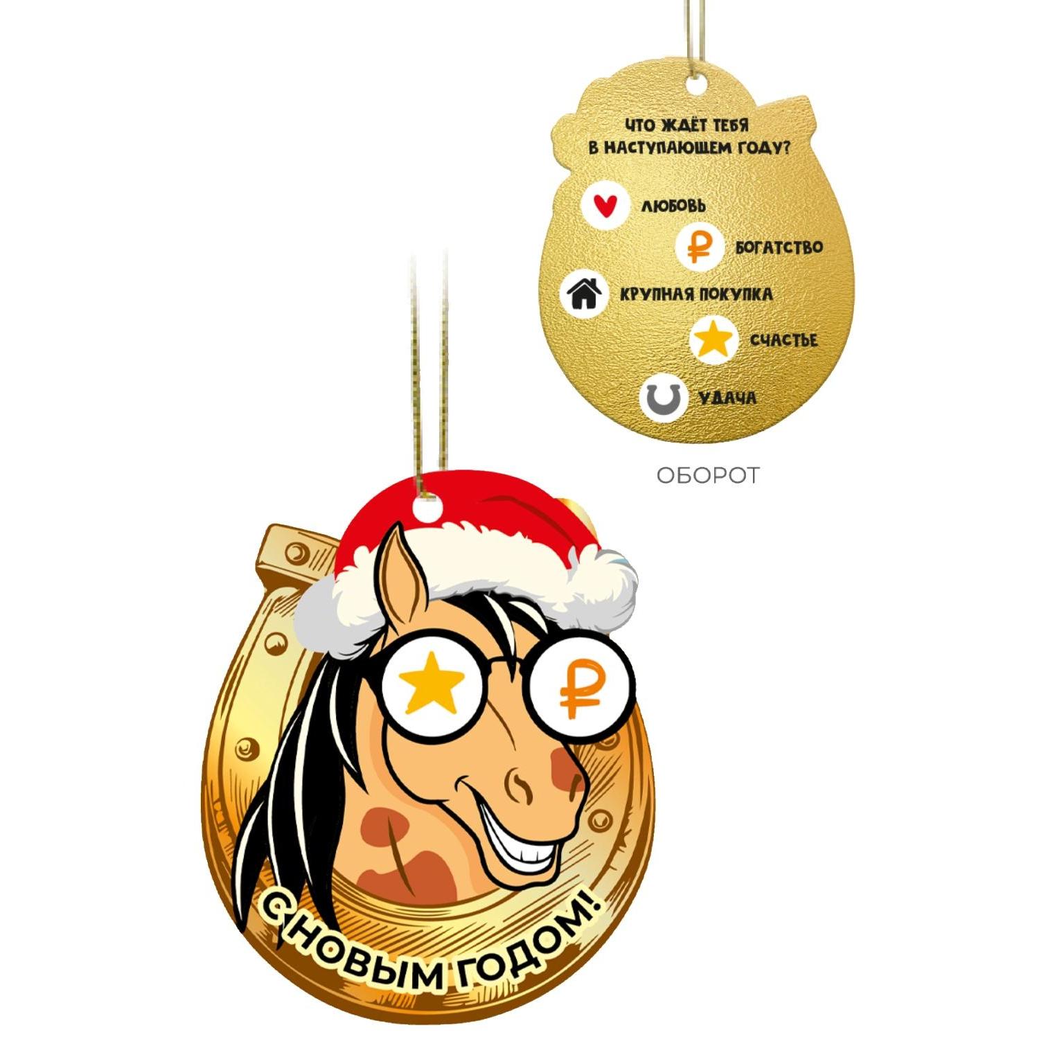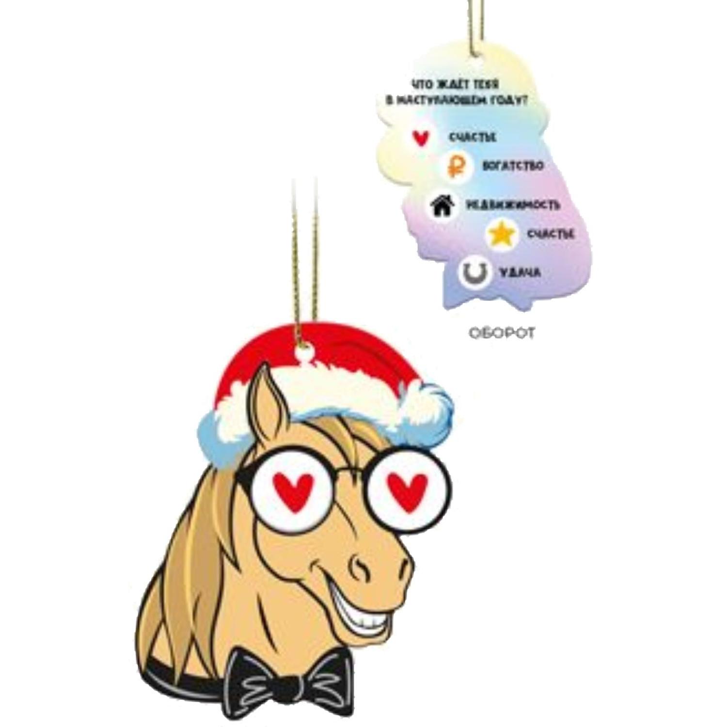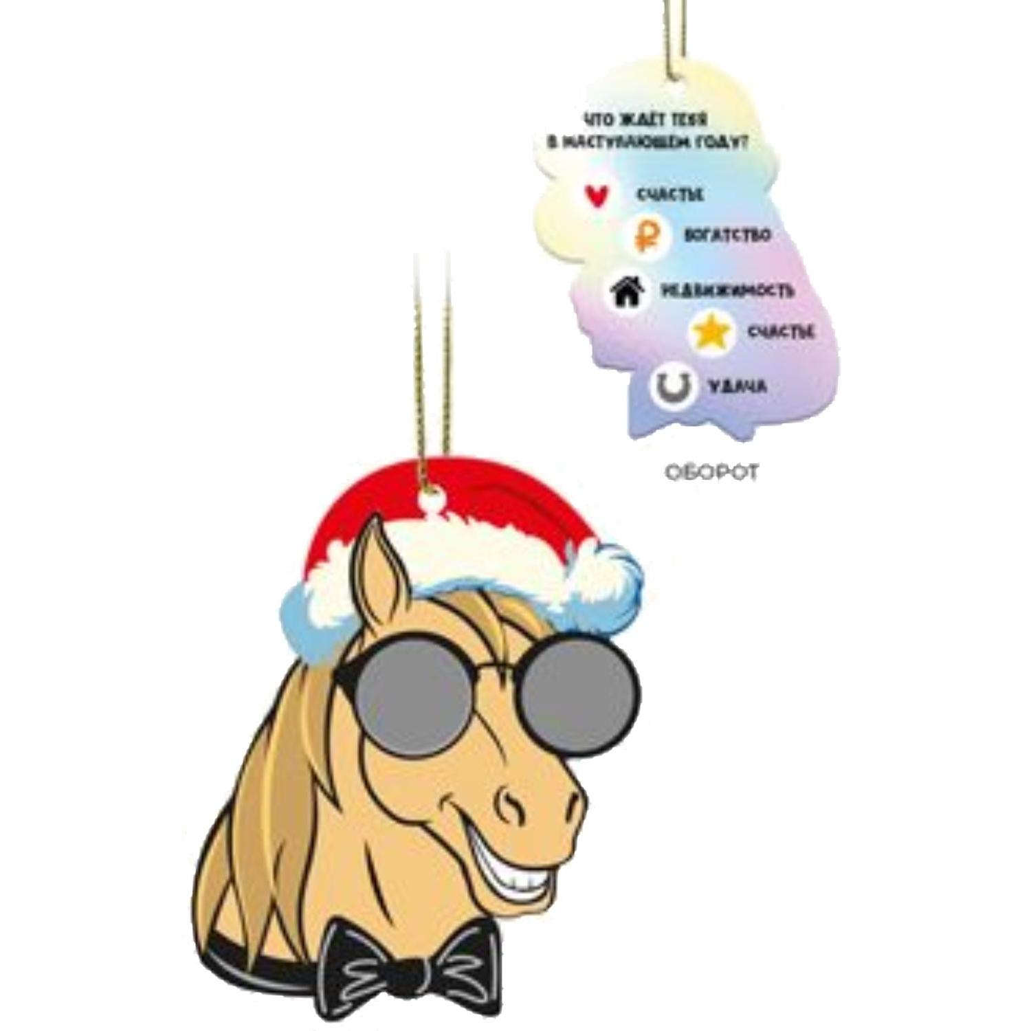 Новогоднее подвесное украшение картонное украшение "Новогодняя лошадка" с предсказанием на предстоящий год.Такая лошадка станет удачным дополнением основного подарка и красивым елочным украшением (игрушка имеет петельку для подвешивания). На оборотной стороне каждой лошадки спрятаны таинственные предсказания, которые помогут вам заглянуть в будущее. Просто сотрите защитный слой, и вы узнаете, что готовит вам грядущий год! Будет ли он успешным и полным новых возможностей? Все станет ясно, стоит только открыть предсказание.