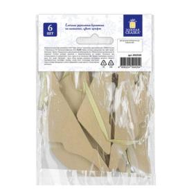 В наборе украшения размером 9х6.5см, 9х7.5см (2шт), 9.5х6см, 10х4см, 10х10см. Цвет украшений - крафт. В верхней части декоративные украшения имеют петлю для подвешивания изделия.