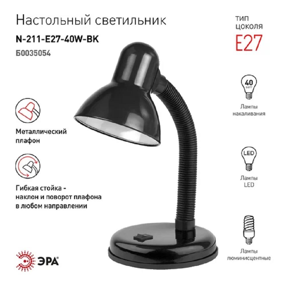 | Наименование | Настольный светильник ЭРА N-211-E27-40W-BK черный |