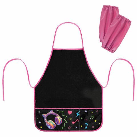 Фартук с нарукавниками для уроков труда BRAUBERG - незаменимая вещь для защиты одежды во время уроков труда и занятий творчеством в школе, детском саду и дома. Предусмотрен для многоразового использования.Фартук и нарукавники изготовлены из водоотталкивающего полиэстера. Стандартный размер фартука - 54х46 см, размер нарукавников - 25х12 см. Крепление фартука на завязках. Кроме того, фартук оснащен 3 карманами для канцелярии и прочих принадлежностей, которые всегда должны быть под рукой во время уроков труда и занятий творчеством. Яркая печать коллекционного дизайна на карманах. Нарукавники оснащены резинкой с обеих сторон. Фартук и нарукавники помогают защитить одежду ребенка от загрязнений во время занятий трудом и творчеством.