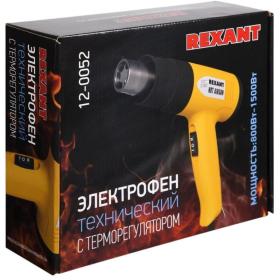 Фен технический Rexant Standard (12-0052)<br><br>Используется для регулирования температуры различных поверхностей и материалов: удаления лака, краски, виниловых наклеек и обоев; формовки пластика, высушивания, размораживания и термоусадки. Корпус фена изготовлен из нескользящего термостойкого пластика, а эргономичная рукоятка удобно лежит в руке во время работы. Благодаря двухступенчатой регулировке пользователи могут выбирать температуру в зависимости от задачи. Оснащён защитой от перегрева, поэтому безопасен при использовании в соответствии с инструкцией. Фен может быть безопасно и удобно установлен на рабочем месте с помощью скобы-подставки. Идёт в комплекте с редукционной насадкой, которая позволяет точечно нагревать нужные места без воздействия на окружающие материалы.<br><br>Преимущества Rexant 12-0052<br>• Металлическое сопло — для предотвращения деформации<br>• Два режима нагрева — для разных работ<br>• Рукоять с глаженными краями — для удобного хвата<br>• Большая мощность — для высокой производительности<br><br>Внешний вид и/или характеристики товара могут быть изменены производителем в соответствии с производственным процессом.