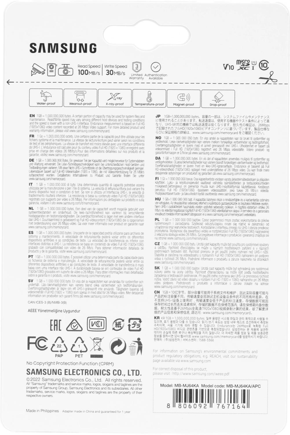 | Ссылка на описание | https://www.samsung.com/us/computing/memory-storage/memory-cards/pro-endurance-adapter-microsdxc-64gb-mb-mj64ka-am/ |