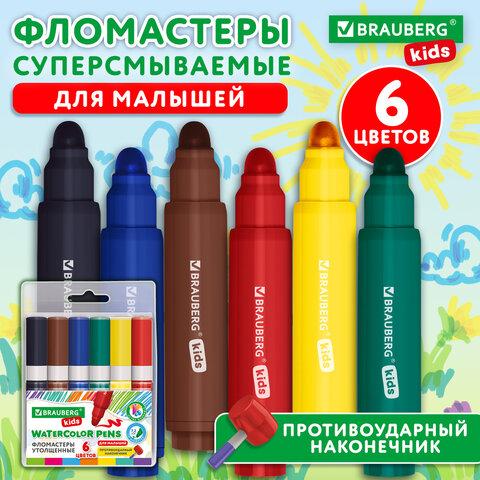 Фломастеры суперсмываемые толстые для малышей BRAUBERG KIDS, 6 цветов, ПВХ-упаковка, 152604 / 4dealer.ru