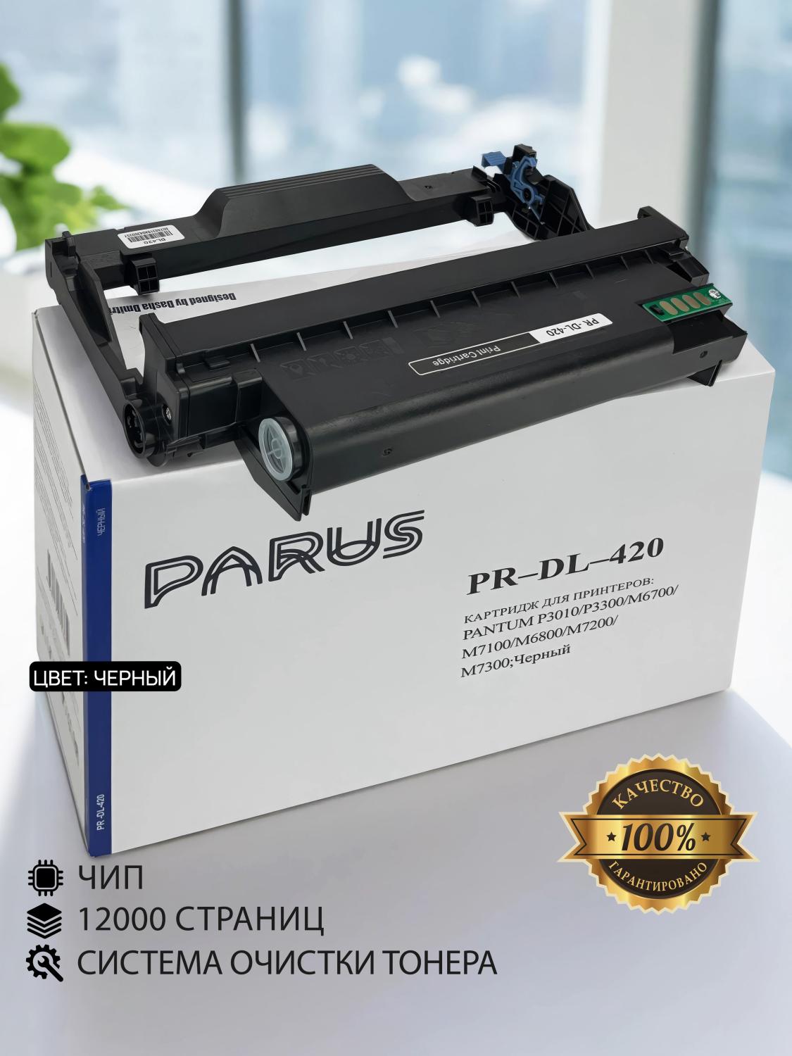 Фотобарабн Parus PR-DL-420 — может использоваться владельцами лазерных монохромных принтеров Pantum таких серий как P3010 P3020 P3300 P3302 P3303 M6700 M6800 M7100 M7102 M7200 M7300 M7302 M7310. Этот элемент обеспечивает стабильное качество печати и долгий срок службы позволяя вам печатать до 12000 страниц. Картридж Парус PR TL-420X совместим с принтерами многофункциональными устройствами Пантум: Серия 3000: Р3010D Р3010DW P3020D; Серия 3300: Р3300DN Р3300DW P3302DN P3303DN; Серия МФУ 6700: М6700D М6700DW; Серия МФУ 6800: М6800FDW; Серия МФУ 7100: М7100DN М7100DW M7102DN M7103DN; Серия МФУ 7200: М7200FD М7200FDN М7200FDW; Серия МФУ 7300: М7300FDN М7300FDW M7302FDN M7302FDW M7310DN M7310DW; Для воспроизводства печати необходимо наличие двух компонентов - фотобарабан/фотовал/драм/драм-картридж/drum и тонер-картридж (в комплект не входит). Они взаимосвязаны каждый рассчитан на выполнение определенной функции при отсутствии одного из них печать невозможна. Элементы идут отдельными блоками то каждый заменяется независимо друг от друга. Это считается более экономичным так как барабан служит дольше обычно требует замены после того как будет использовано несколько тонер-картриджей. Особенности фотовала Parus PR DL420: Высокое качество черной краски для печати: многоразовый катридж гарантирует четкие и яркие отпечатки благодаря качественным материалам; Долговечность: С ресурсом в 12000 страниц (при стандартном заполнении в 5%) этот картридж подходит для интенсивного использования в офисе или дома; В фотобарабане Пантум PR DL 420 есть боковое отверстие для хранения отработанного тонера. Также необходимо заменить чип; Установлен чип - с помощью которого принтер Pantum правильно взаимодействует с картриджем (корректность работы замена картриджа 420 или тонера). Также чип фиксирует количество отпечатанных страниц и по достижении установленного лимита блокирует дальнейшую печать; Изготовлен по стандарту ISO/IEC 19752 (оценка ресурса картриджа ДЛ 420) ISO 9001 (стандарт управления качества предприятия) ISO 14001 (стандарт экология предприятия); Отвечает требованиям нормативно-технической документации ГОСТ-Р и имеют все необходимые подтверждающие сертификаты соответствия; Стандарт ISO/IEC 19752: ISO/IEC19752 подтверждает ресурс картриджа DL 420 не менее 12000 стандартных заполненных страниц на 5% страницы формата A4; Стандарт описывает строгую методику тестирования картриджей DL420 на трех различных принтерах что позволяет минимизировать ошибки связанные с различиями в характеристиках самих принтеров. Это обеспечивает более точные и воспроизводимые результаты; Стандарт ISO/IEC-19752 учитывает такие факторы как плотность заливки и эффективность переноса тонера на бумагу; Стандарт ISO 14001: Данный сертификат выдается компаниям которые стремятся улучшить свои экологические практики и продемонстрировать свою ответственность перед обществом и окружающей средой; Стандарт ISO 9001: Данный сертификат означает что компания постоянно улучшает свои процессы повышает удовлетворенность своих клиентов и демонстрирует приверженность качеству;