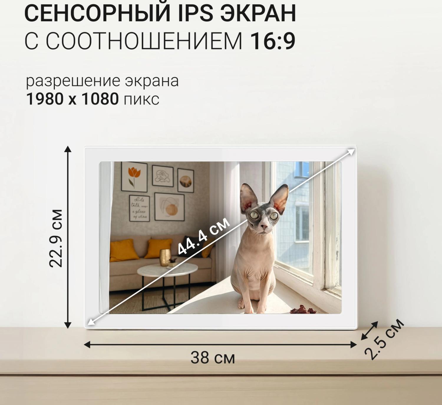 | Особенности | WiFi фоторамка, работа через приложение на iOS и Android. Удаленное управление и обмен и фотографиями и видео. |