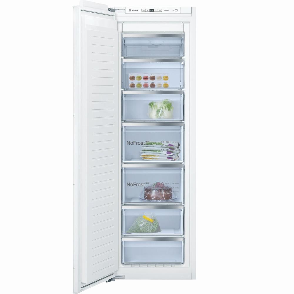 Встраиваемый морозильник Bosch GIN81AEF0U с общим полезным объемом 211 л. Продукты внутри прибора удобно размещаются в 2 ящиках BigBox и пяти прозрачных боксах. Панель с LCD дисплеем, интегрированная во внутренней стороне морозильной камеры, позволяет настроить рабочую температуру. GIN81AEF0U в сутки способен заморозить 20 кг. продуктов. Техника плоских шарниров дает результат мягкого и бесшумного закрытия двери