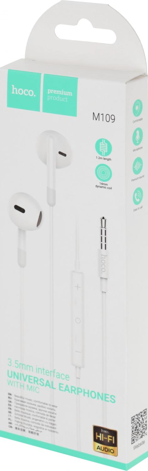 Гарнитура вкладыши Hoco M109 1.2м белый проводные в ушной раковине / 4dealer.ru