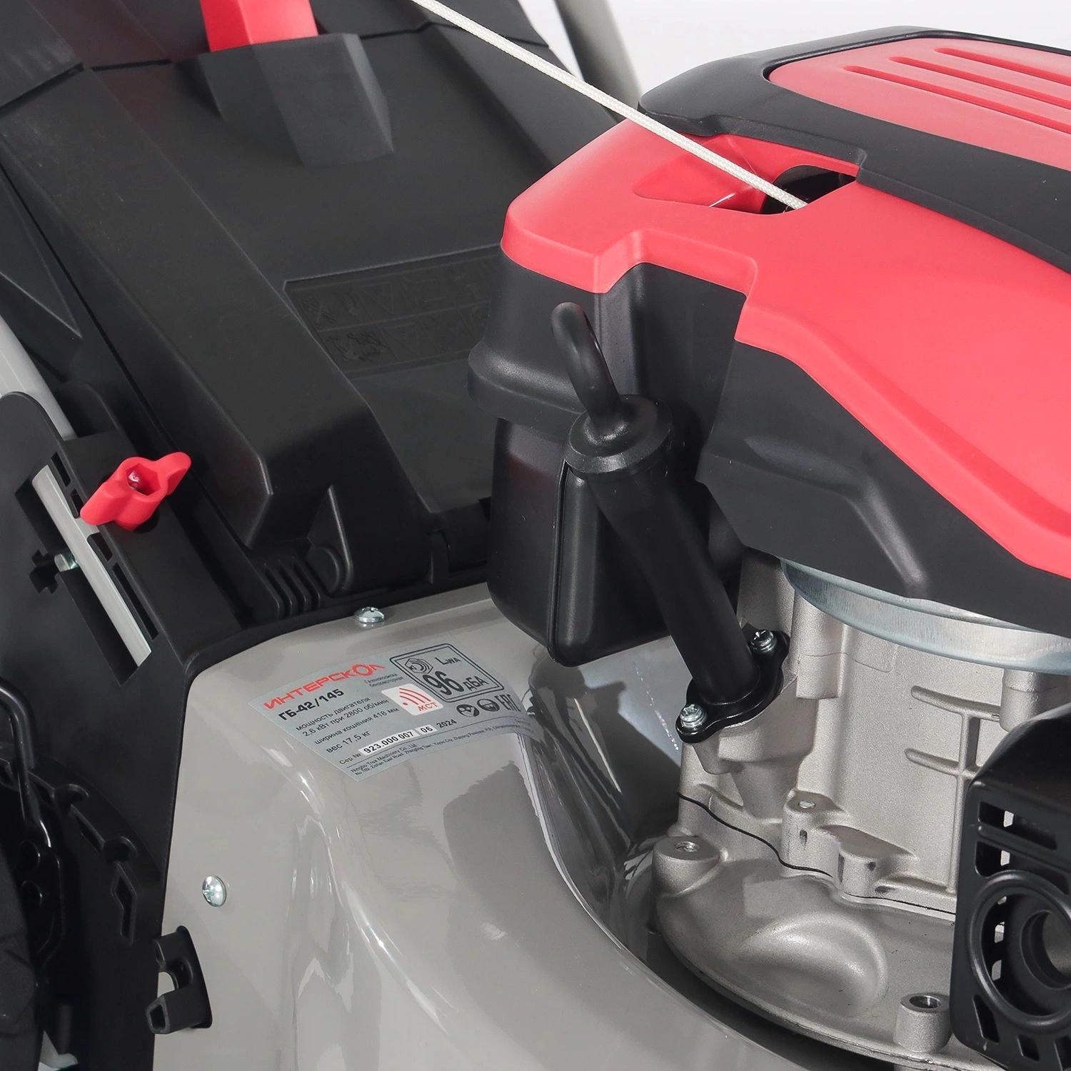 | Особенности устройства | мульчирование, прорезиненная ручка, регулировка высоты скашивания, складная ручка |