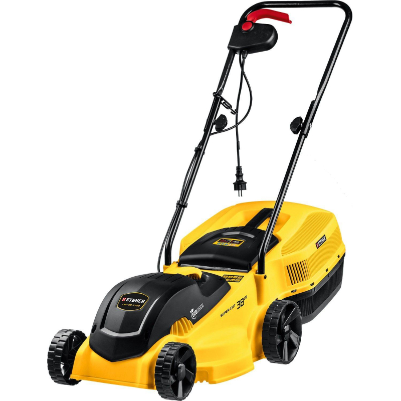 Газонокосилка сетевая Steher LM-38-1700Компактная газонокосилка отличается надёжностью, простотой обслуживания, а также превосходным соотношением цены и качества.ПрименениеДля подстригания травы при уходе за газоном (с вращающимся ножом). Имеет функции кошения со сбором травы и регулировки высоты кошения от 30 до 70 мм. Прекрасная альтернатива бензиновой газонокосилке: меньшее потребление энергии при той же режущей способности, отсутствие необходимости постоянной покупки ГСМ и контроля уровня топлива и масла, простота эксплуатации и ремонта, а также меньшие шум и вибрация и полное отсутствие вредных выбросов.Особенности- Травосборник позволяет поддерживать чистоту на обработанном участке и упрощает утилизацию травы- Мощный двигатель ускоряет процесс обработки, а оптимальная ширина кошения снижает нагрузку, что увеличивает ресурс изделия- Широкий диапазон и ступенчатая центральная регулировка высоты кошения расширяют возможности применения газонокосилки- Облегчённые колёса и эргономичная рукоятка облегчают перемещение косилки по газону- Нож специальной формы создаёт восходящий поток воздуха, который поднимает полёгшую траву, направляет скошенную траву в травосборник и даже может собирать опавшую листву- Органы управления расположены на регулируемой по высоте рукоятке, что повышает удобство и безопасность работы- При потере контроля над машиной режущий инструмент и двигатель останавливаются- Тормоз двигателя мгновенно останавливает вращение ножа при отключении питания для большей безопасностиКомплектация- Газонокосилка- Травосборник- Рукоятка верхняя- Рукоятка нижняя- Комплект крепежа- Руководство по эксплуатацииВнешний вид и/или характеристики товара могут быть изменены производителем в соответствии с производственным процессом.