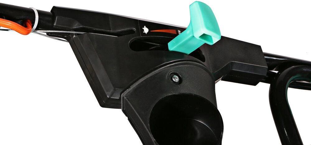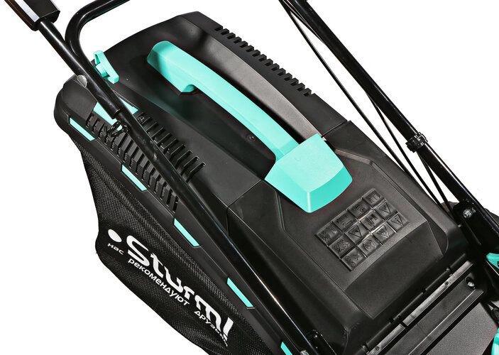 | Комплект поставки | Газонокосилка, Рукоятки (верхняя, нижняя), Травосборник, Дефлектор бокового выброса, Заглушка отсека заднего выброса, Ручка, шайба, гайка, Винт (4 шт.), Болт (7 шт.), Переднее колесо, Кронштейн переднего колеса, Защита кронштейна переднего колеса, Торцовый ключ, Ключ для смены лезвия |