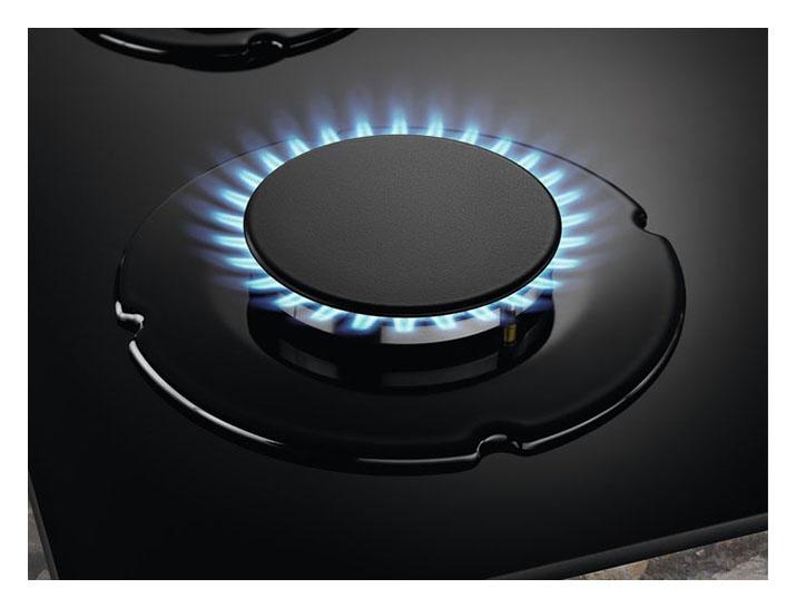 Система газ-контроль автоматически прекращает подачу газа при случайном затухании пламени, гарантируя максимальную безопасность. Автоматический электроподжиг встроен в ручки управления, что делает включение конфорок максимально удобным.