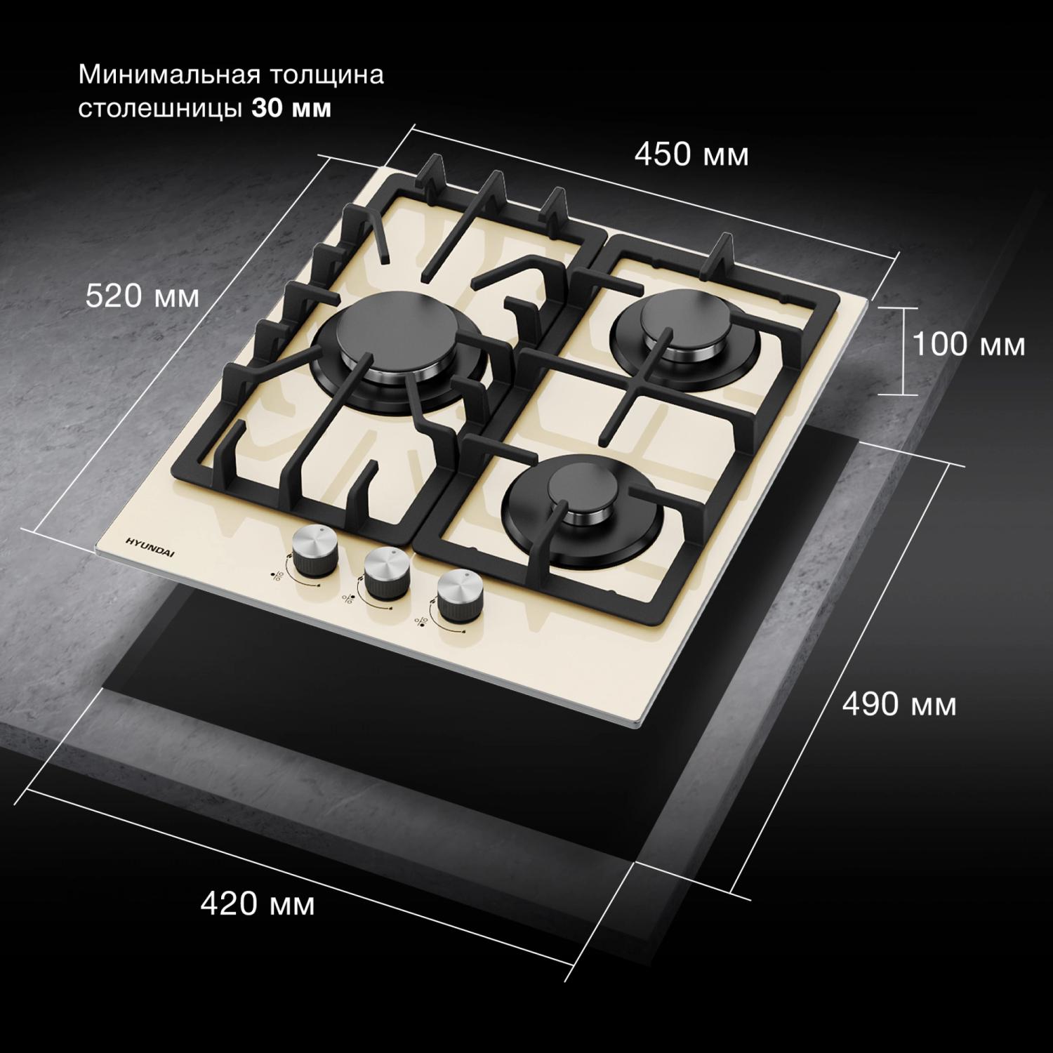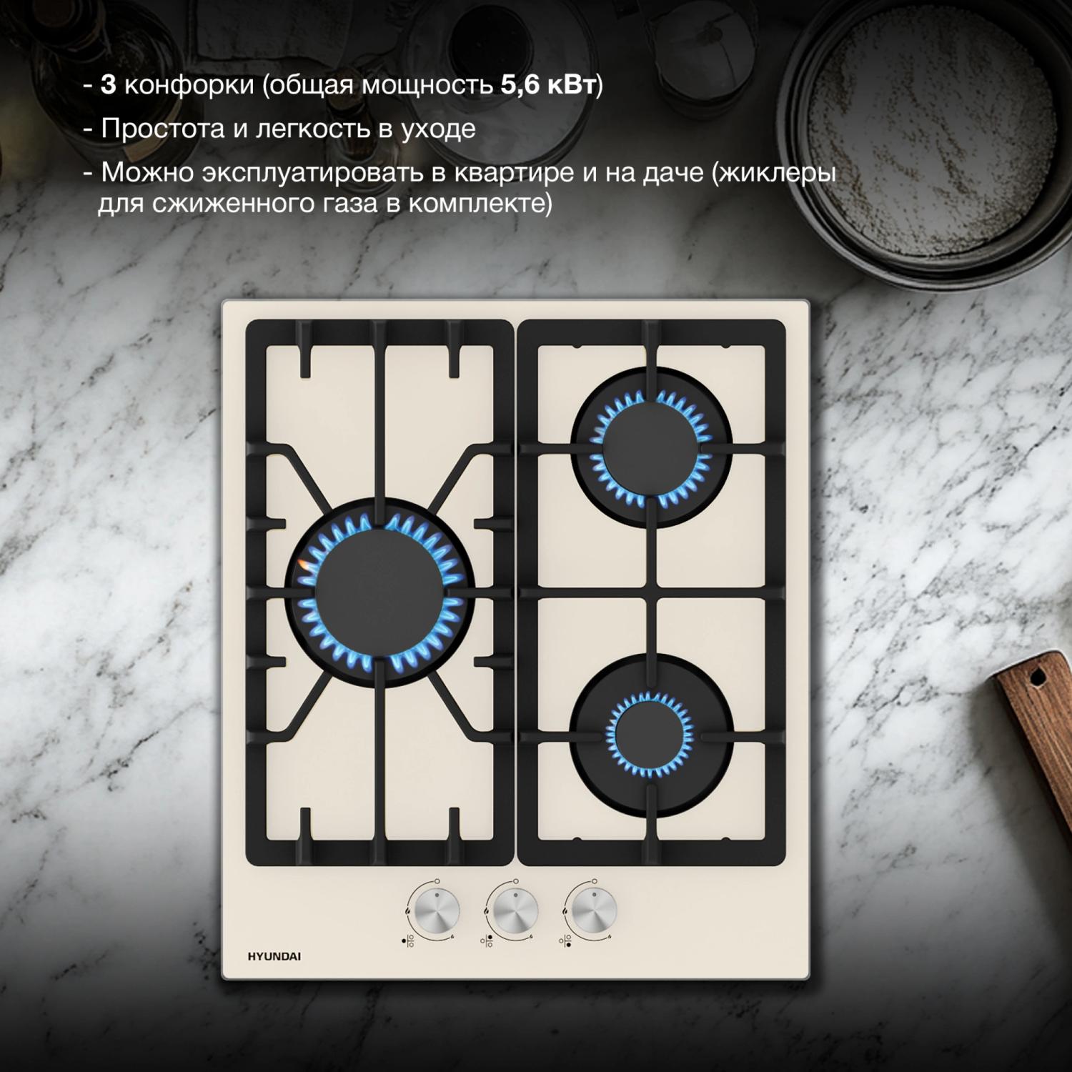 Варочная панель газовая Hyundai HHG 4333 BE Внешний вид и/или характеристики товара могут быть изменены производителем в соответствии с производственным процессом.