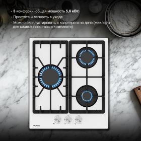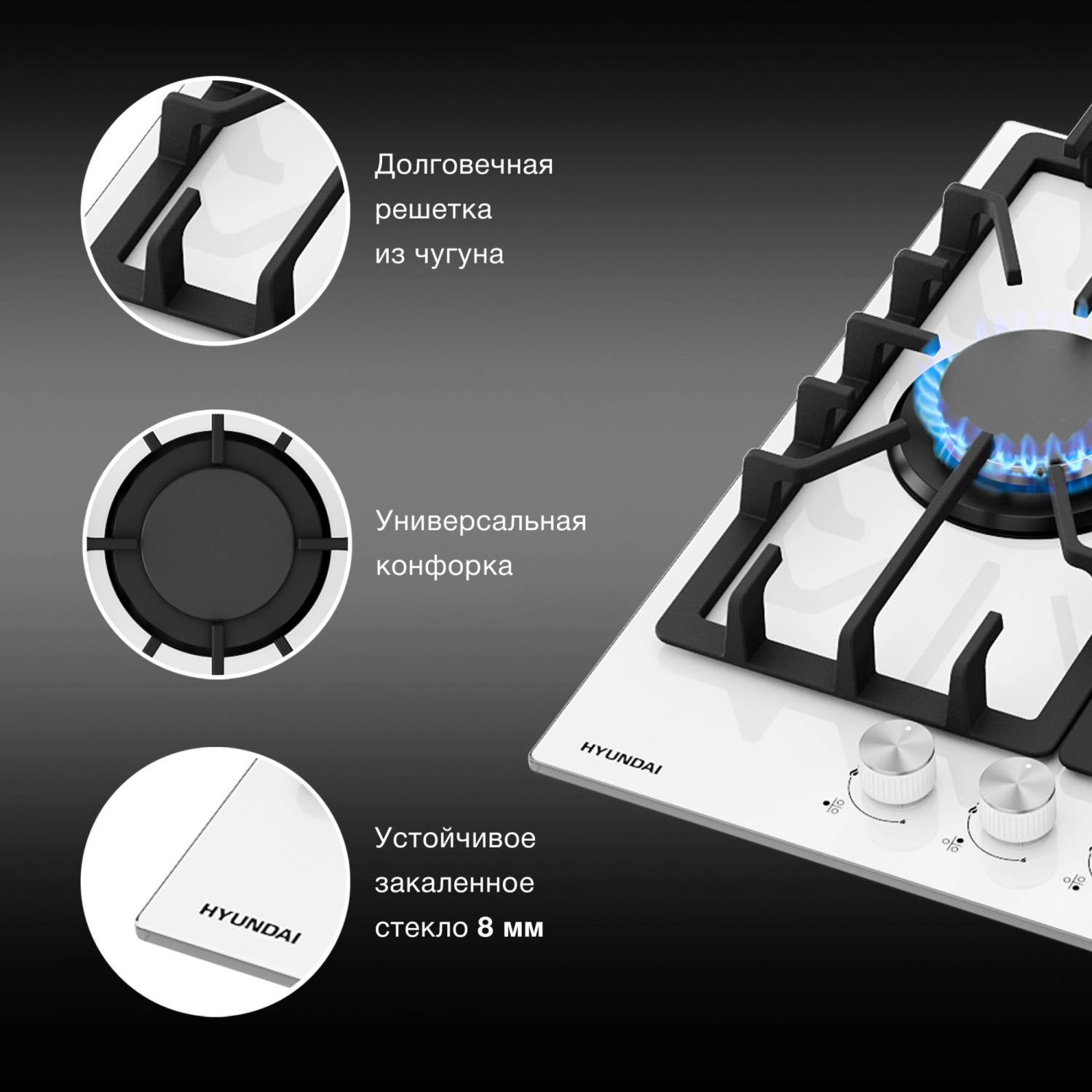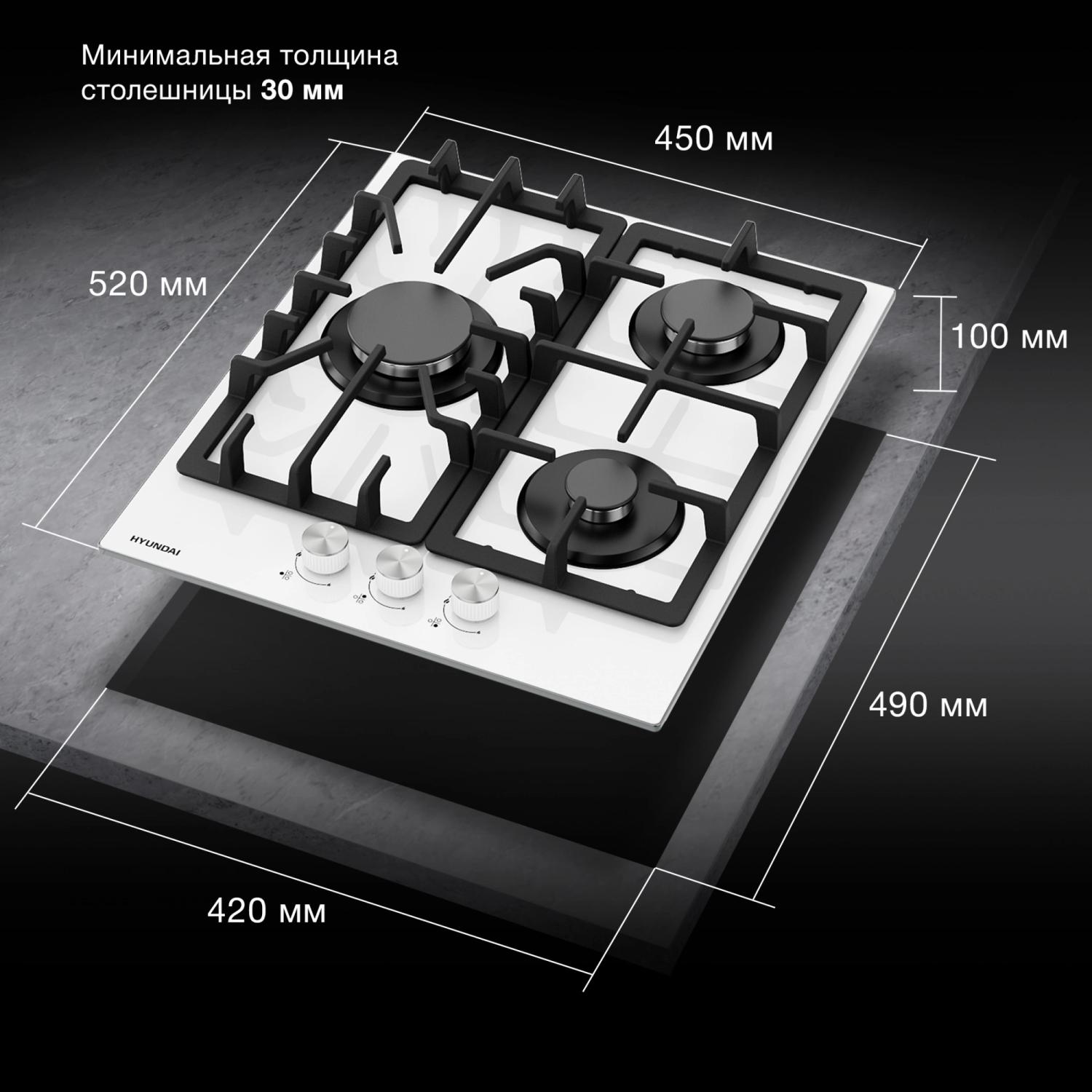 Варочная панель газовая Hyundai HHG 4333 WG Внешний вид и/или характеристики товара могут быть изменены производителем в соответствии с производственным процессом.