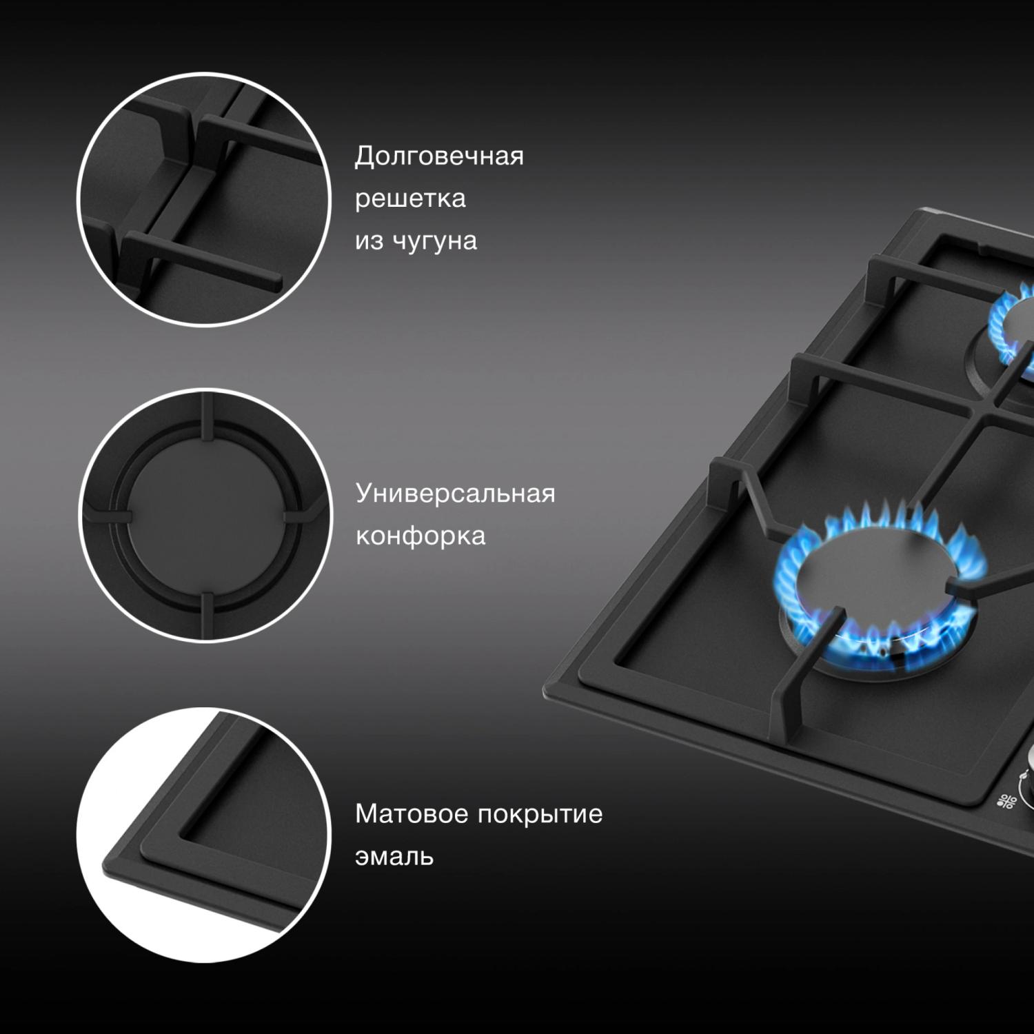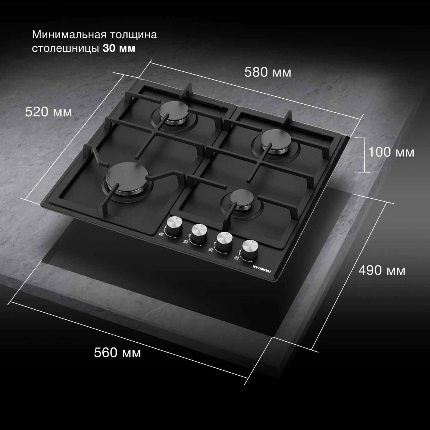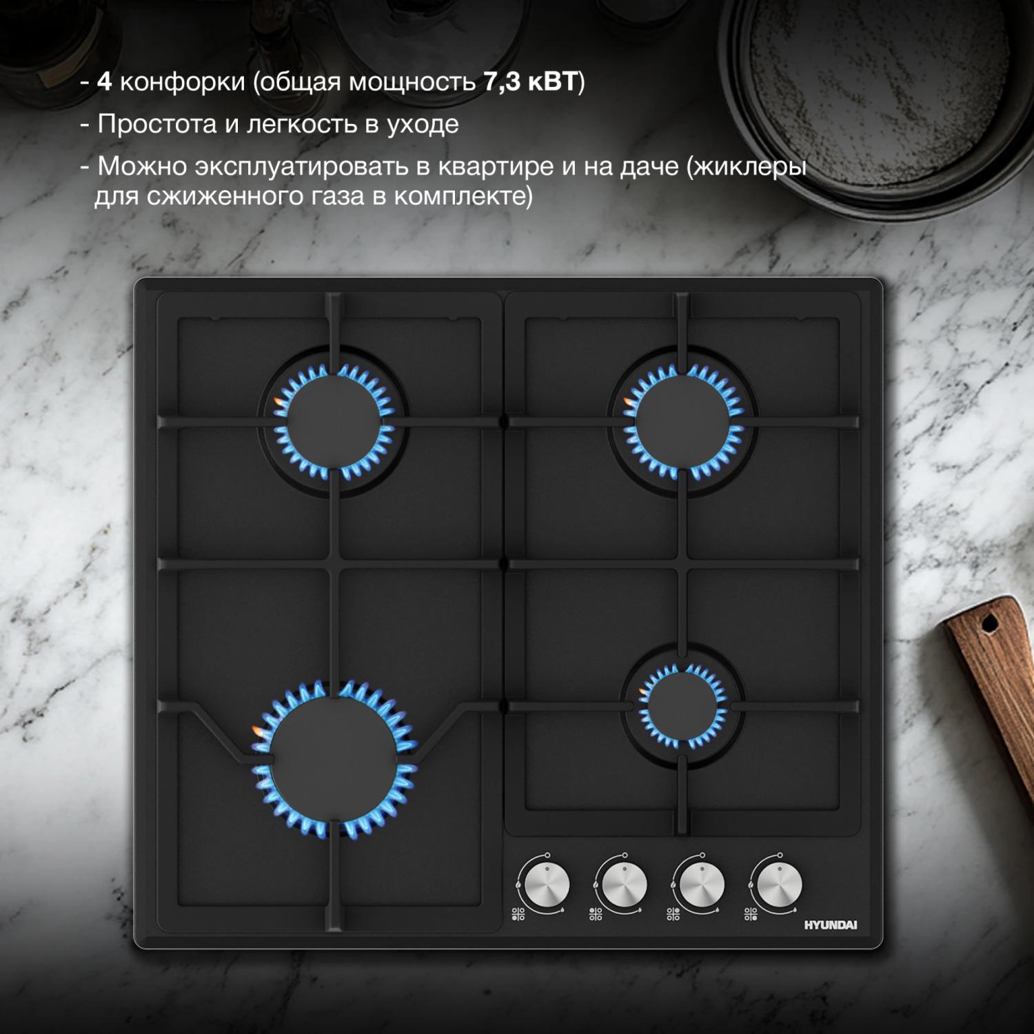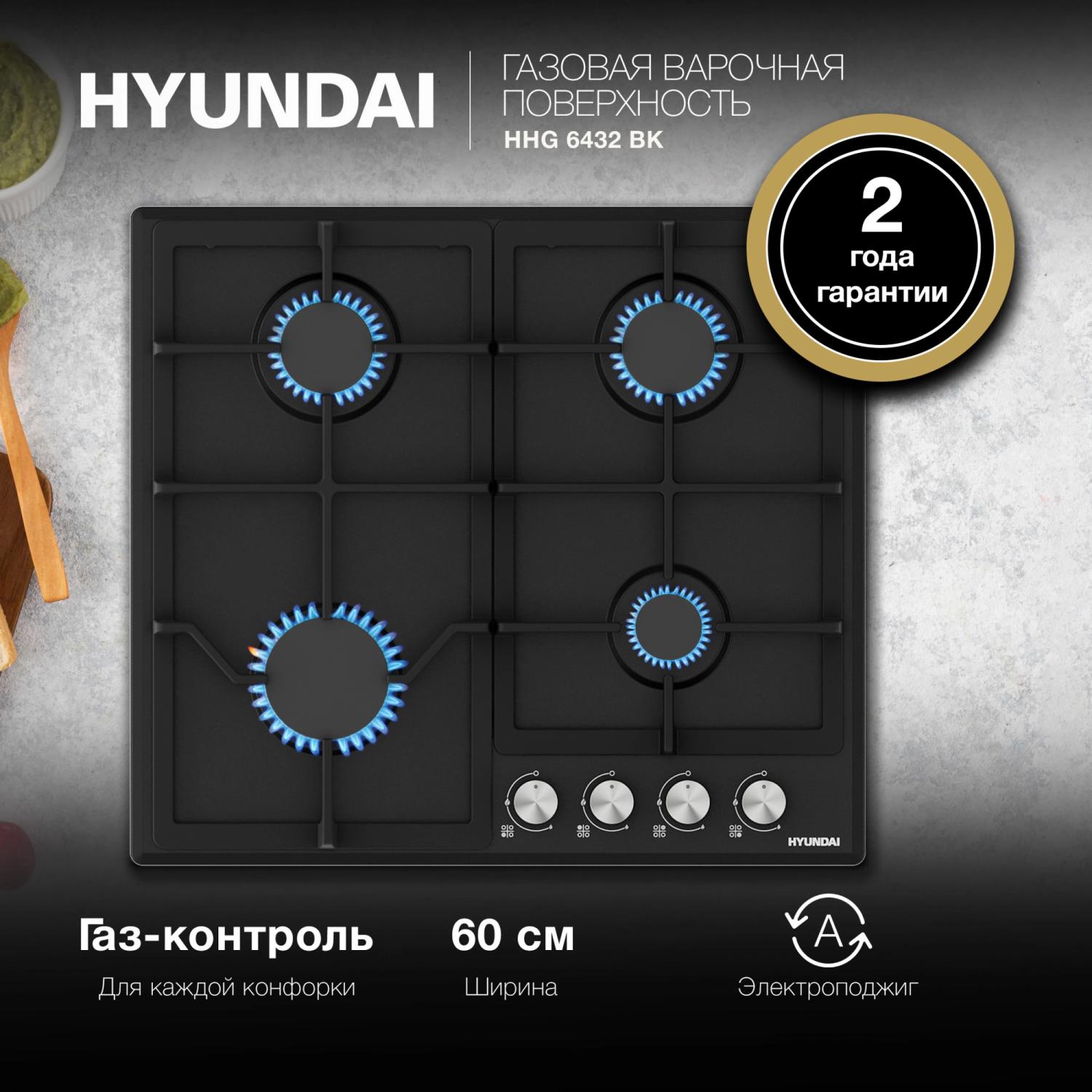 Газовая варочная поверхность Hyundai HHG 6432 BK черный / 4dealer.ru