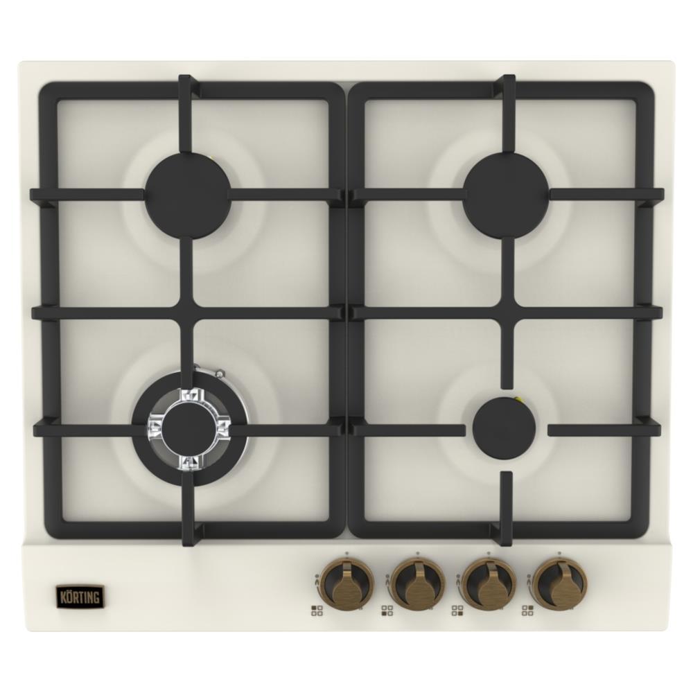 Встраиваемые газовые панели Korting/ Газ, 60 см, ретро, WOK-конфорка, слоновая кость