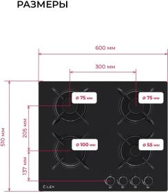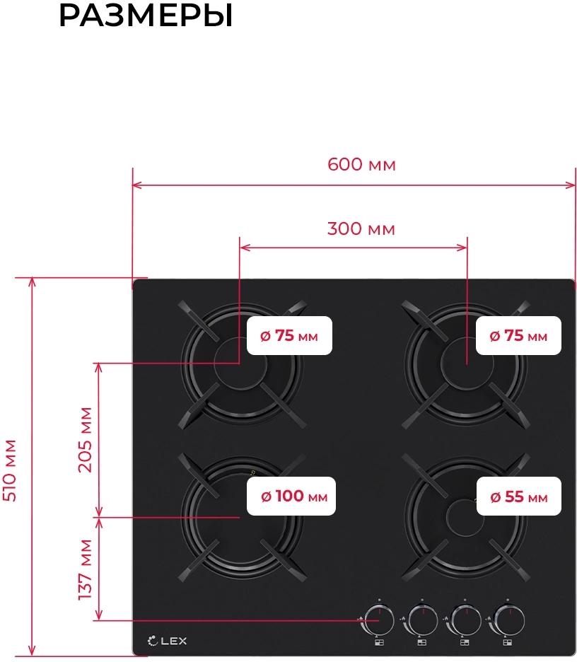 Газовая варочная поверхность Lex GVG 643 BBL черный / 4dealer.ru