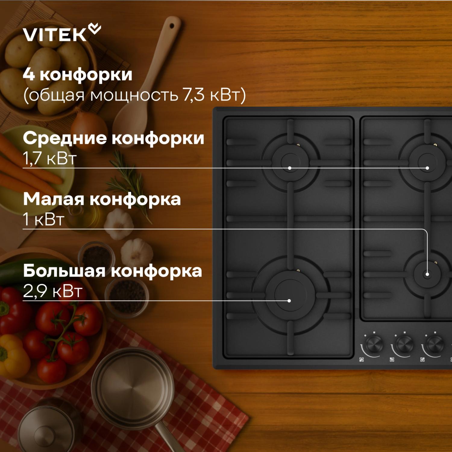 Газовая варочная поверхность Vitek VGH 6410 MBK черный / 4dealer.ru