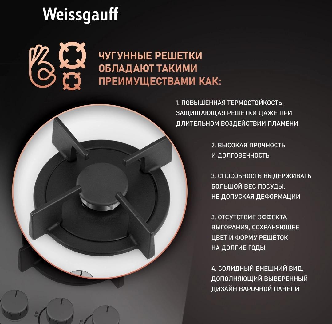 Газовая варочная поверхность Weissgauff HG 640 WGh белый / 4dealer.ru
