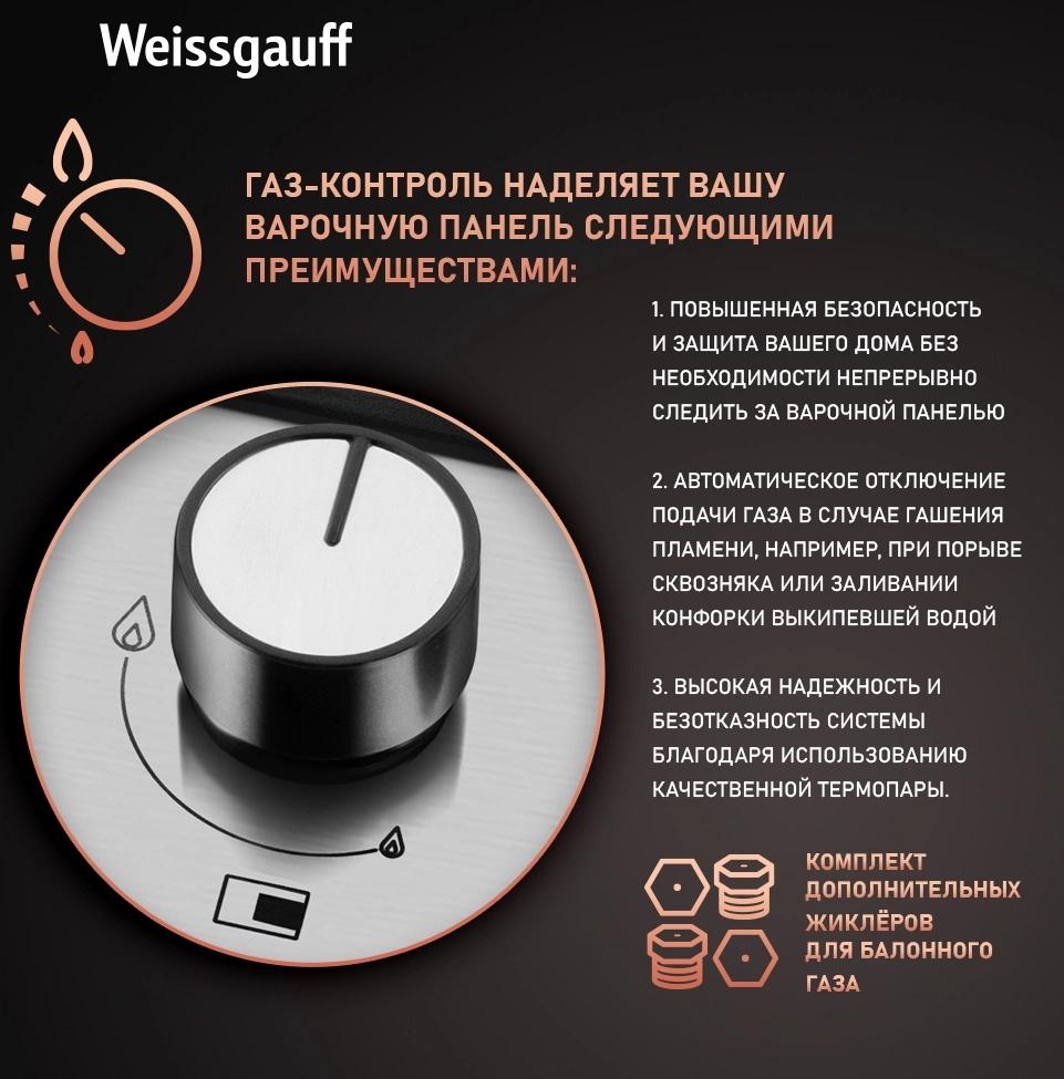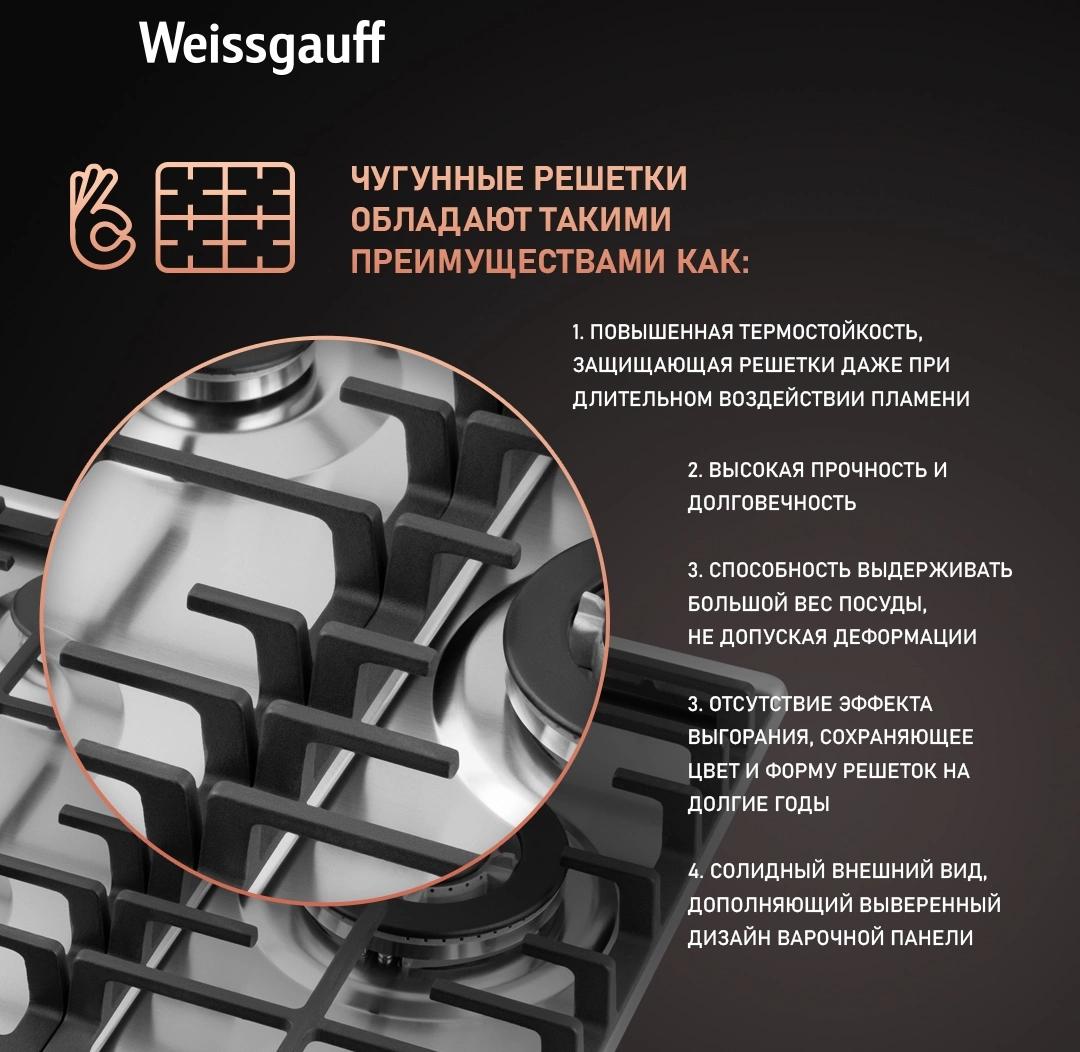 Газовая варочная поверхность Weissgauff HGG 451 XFV нержавеющая сталь