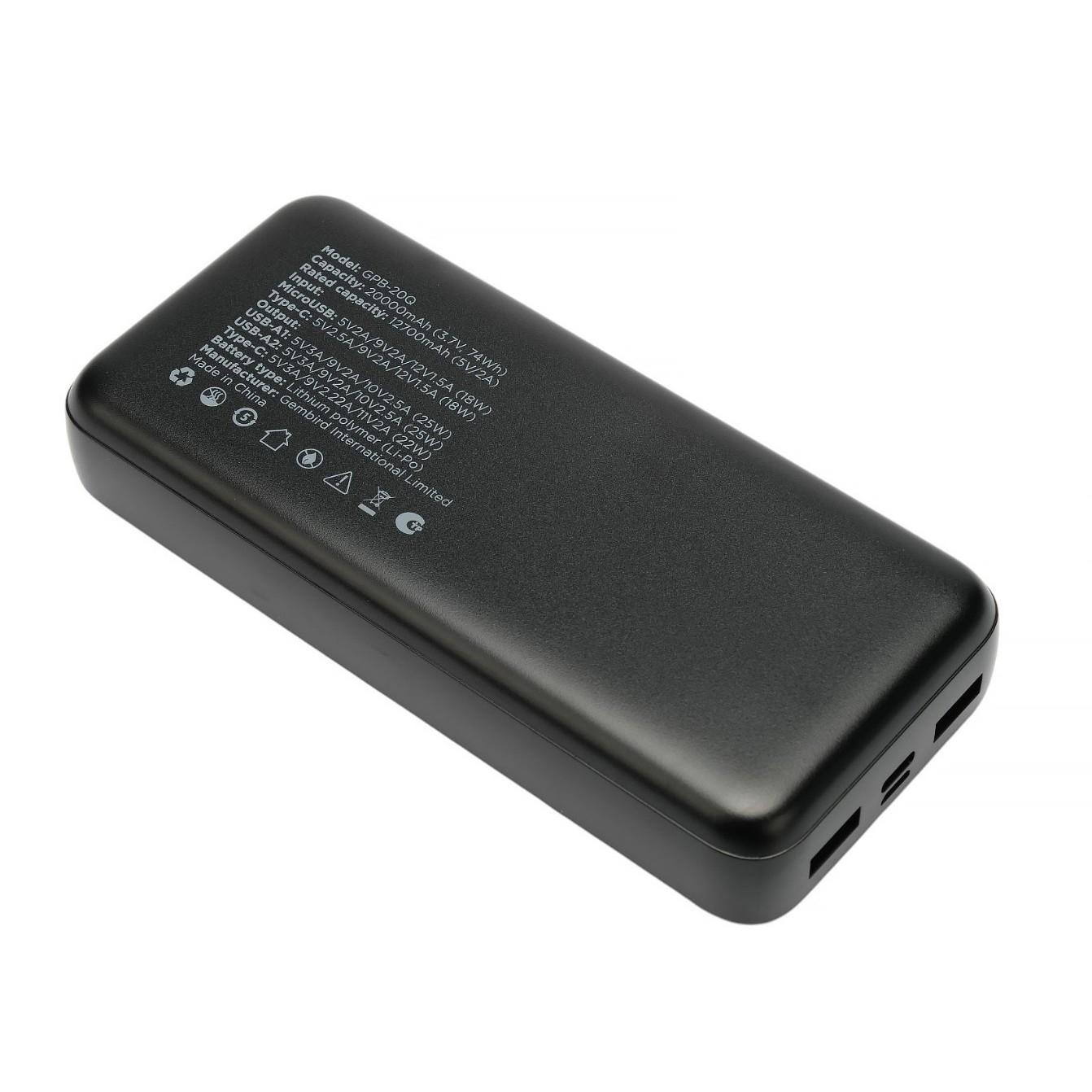 Gembird Портативный аккумулятор, 20000мАч, QC/PD, дисплей, черный (GPB-20Q)
