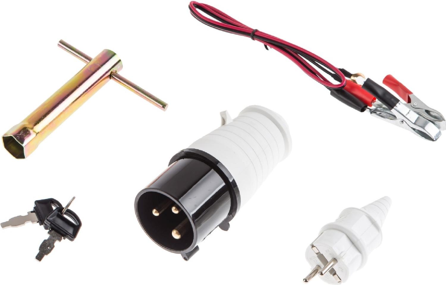 | Комплектация | Генератор, кабель зарядки АКБ, ключ свечной, отвертка комбинированная, вилка 220В - 2 шт., комплект для транспортировки генератора. БЕЗ АКБ |