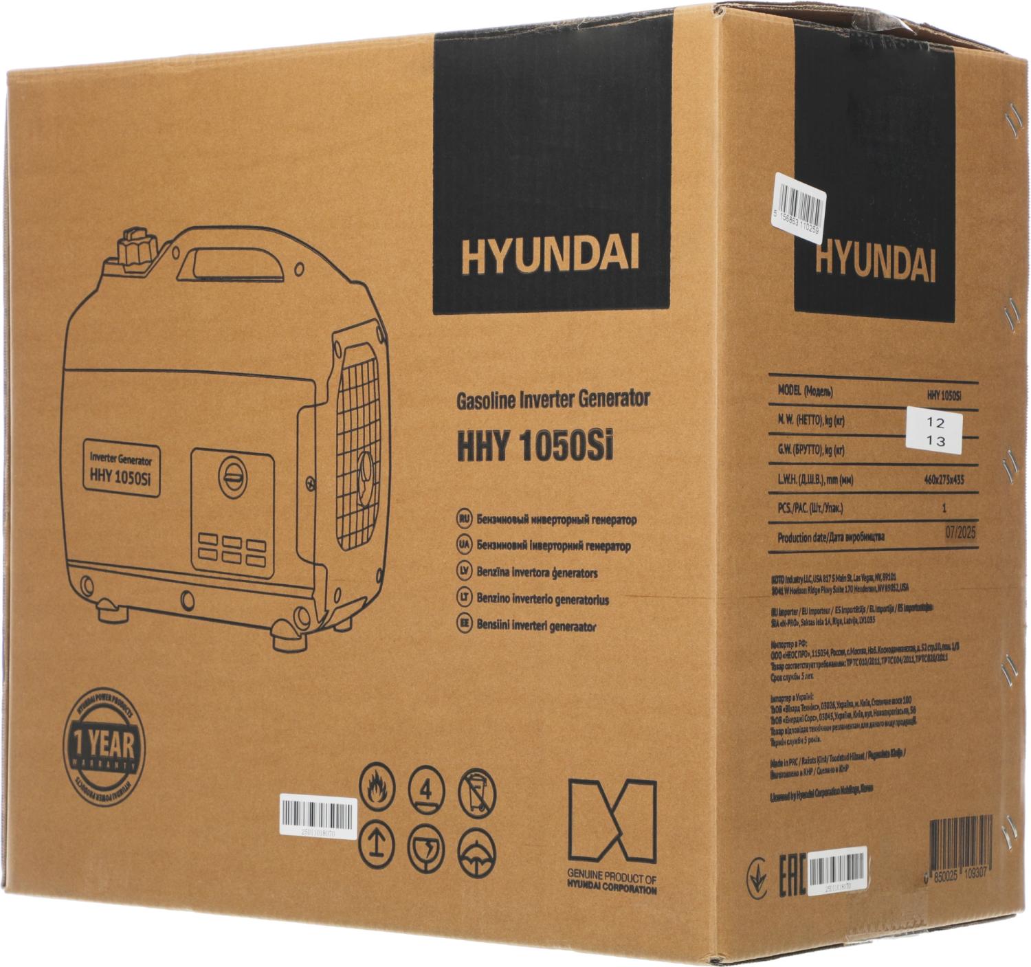 Генератор Hyundai HHY 1050Si 1.2кВт