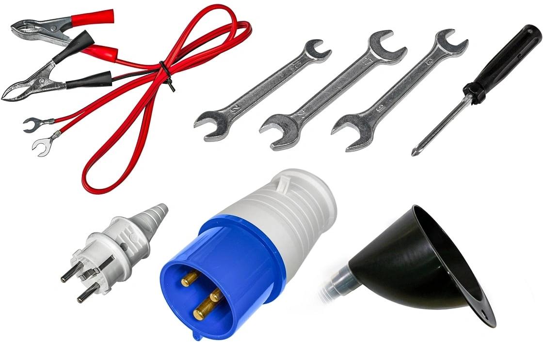 | Комплектация | Генератор; АКБ; вилка, для подключения общей нагрузки, 2 шт.; набор проводов для встроенного зарядного устройства; колёсный комплект; лейка; отвёртка; ключи; руководство по эксплуатации; гарантийный талон производителя. |